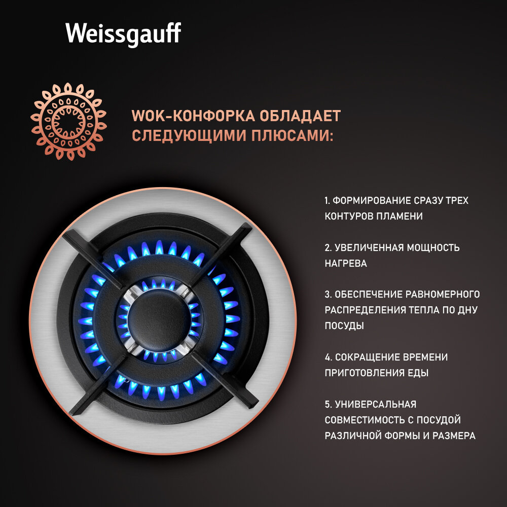 Варочная панель Weissgauff HGG 641 XR WOK-конфорка, Рукоятки Hi-Tech, газ-контроль интересное: