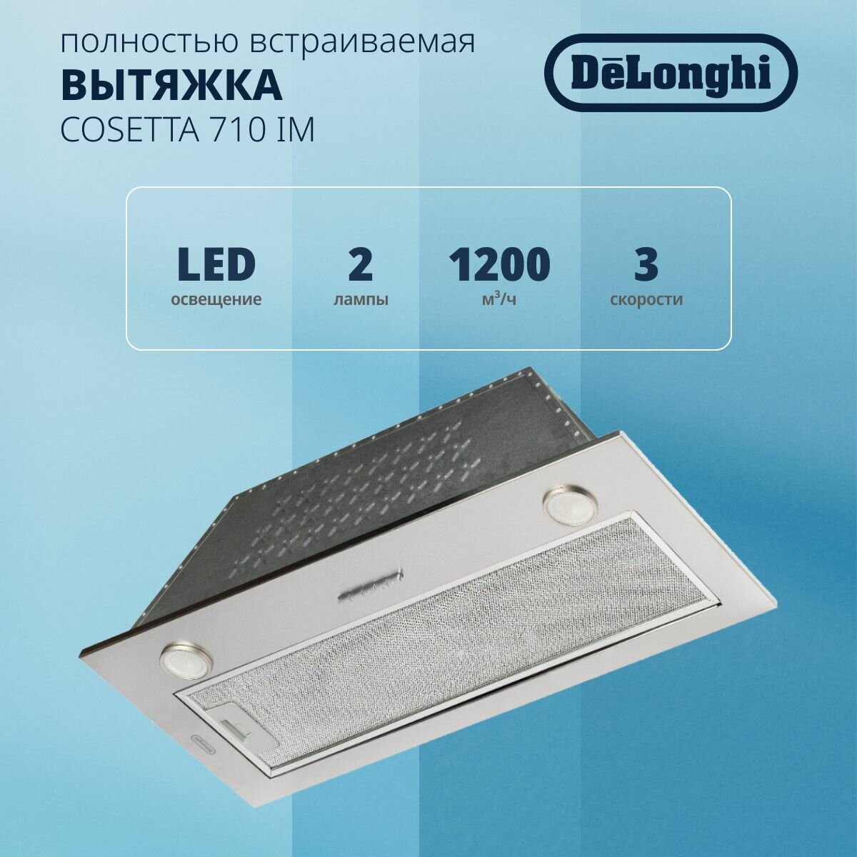 Вытяжка в подвесной шкаф DeLonghi COSETTA 710 IM, 1200 куб.м/час, ширина 70 см, нержавеющая сталь, Турция