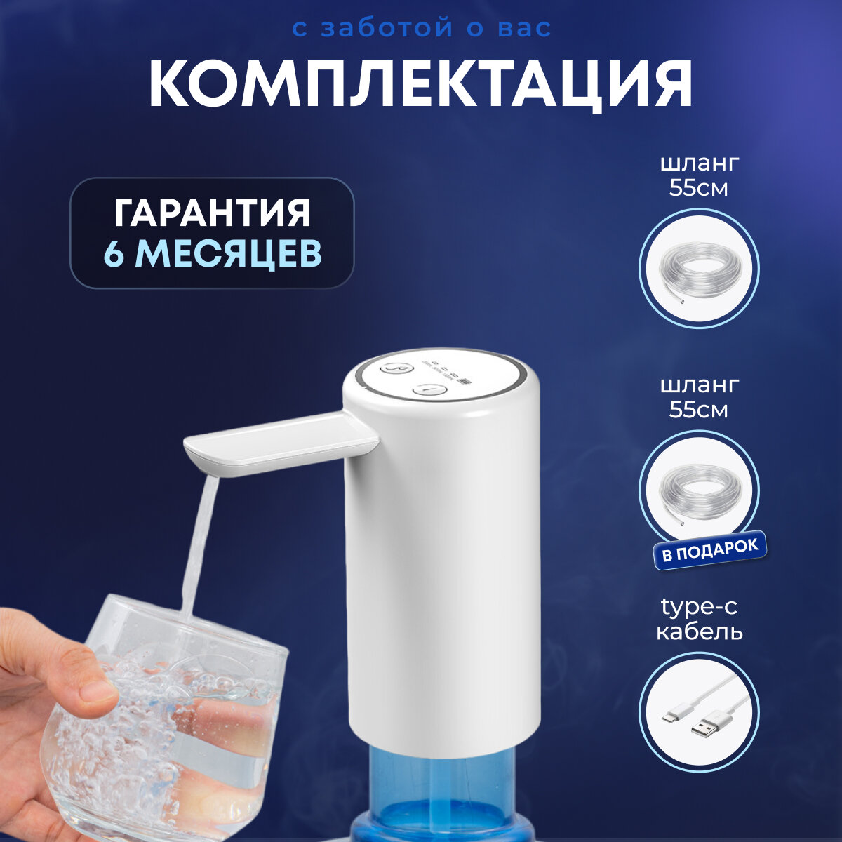 Помпа для воды электрическая белая на бутыль 19л с двойным насосом Aqualike интересное: