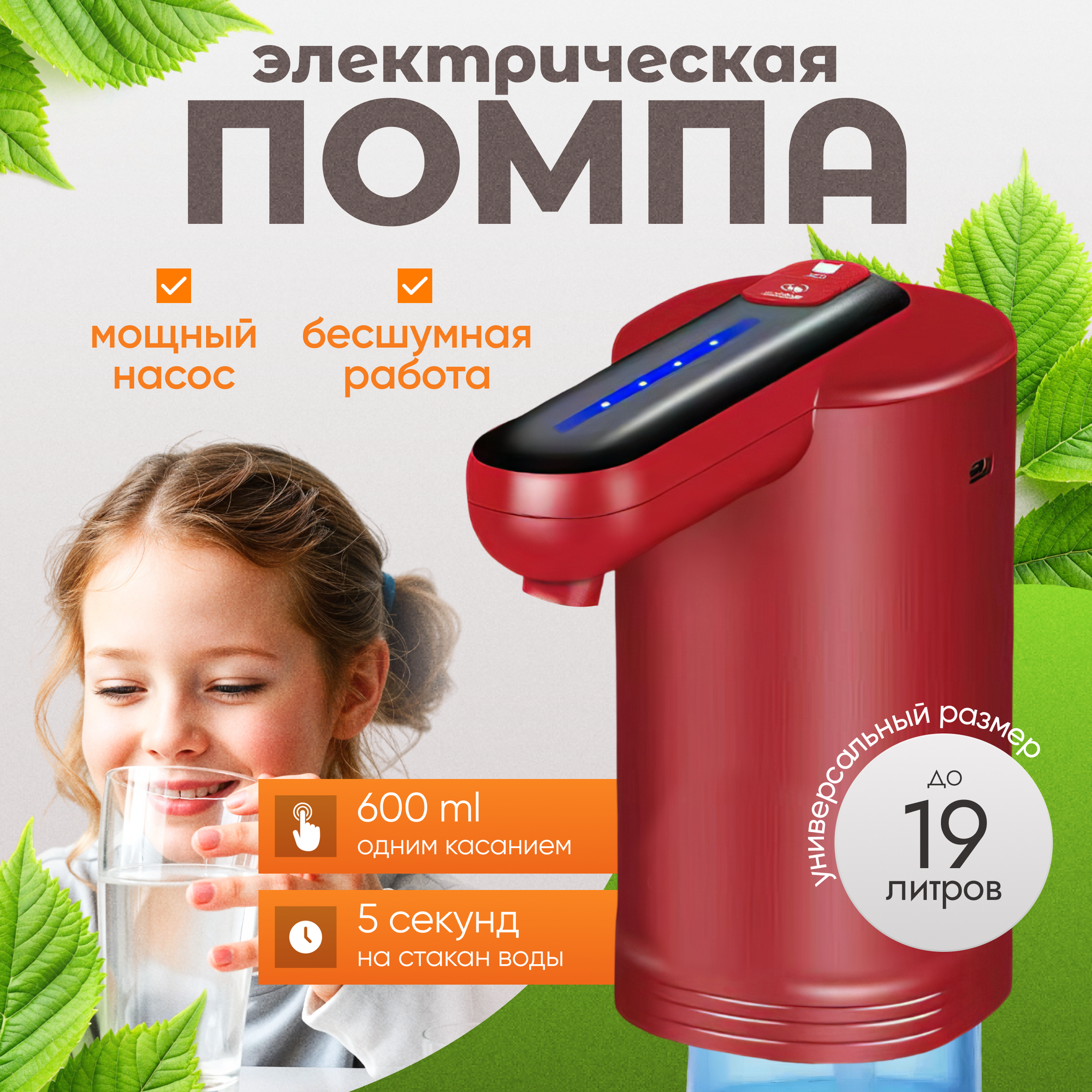 Купить Помпа для воды электрическая красная на бутыль 19л с двойным насосом Aqualike