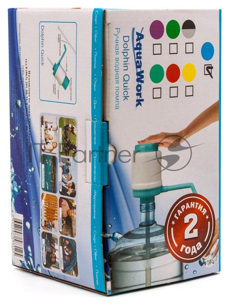 Помпа для 19л бутыли Aqua Work Дельфин Квик механический голубой/белый картон