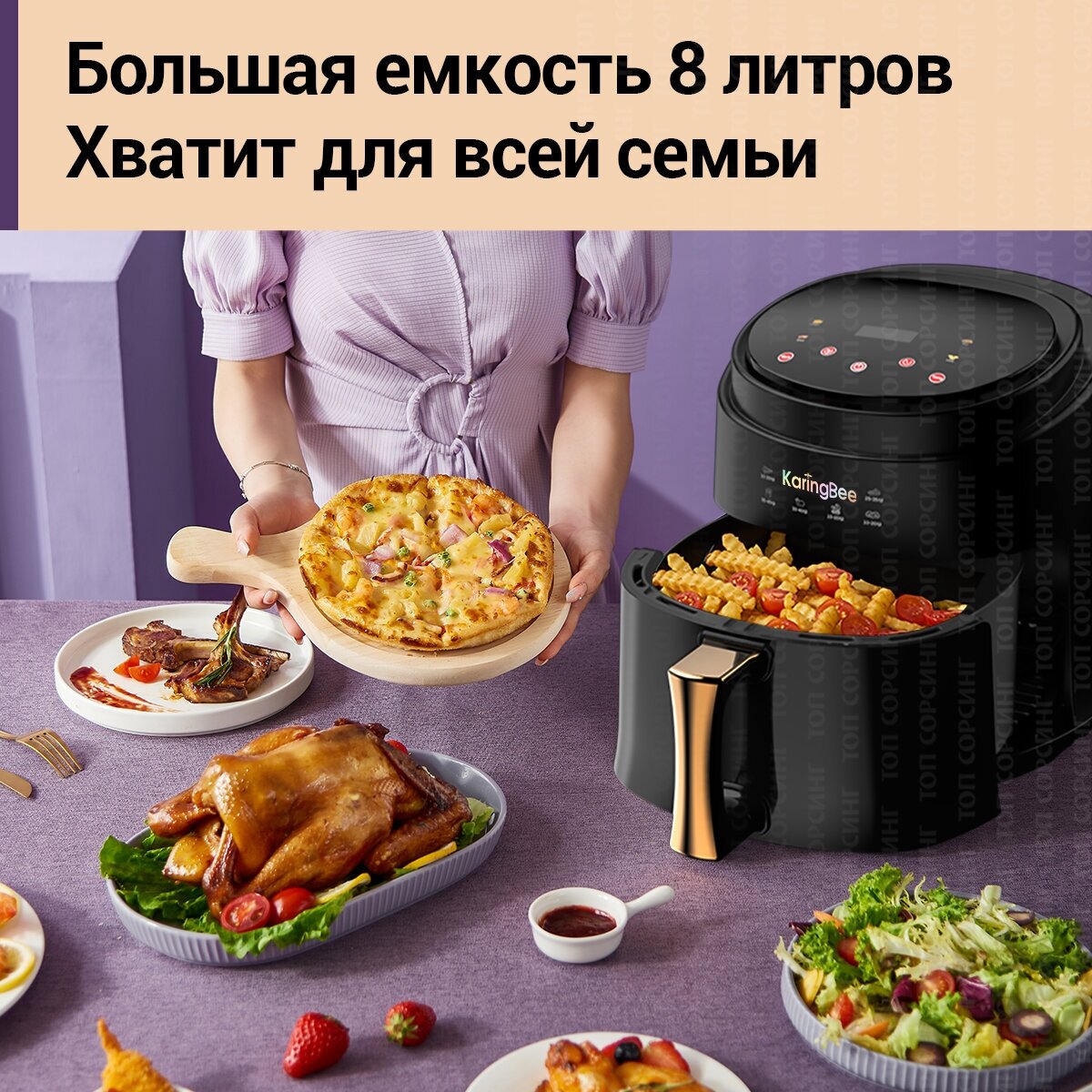 Аэрогриль электрический KaringBee JD689 черный(ЕАС-сертификат)/100 вкладышей в подарок/ 5 программ приготовления/объем 8 л /Мультипечь для кухни 1400 Вт интересное: