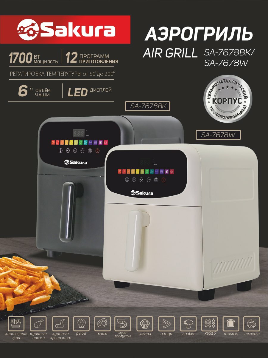 SAKURA 4657798312561 SAKURA SA-7678BK аэрогриль Аэрогриль интересное: