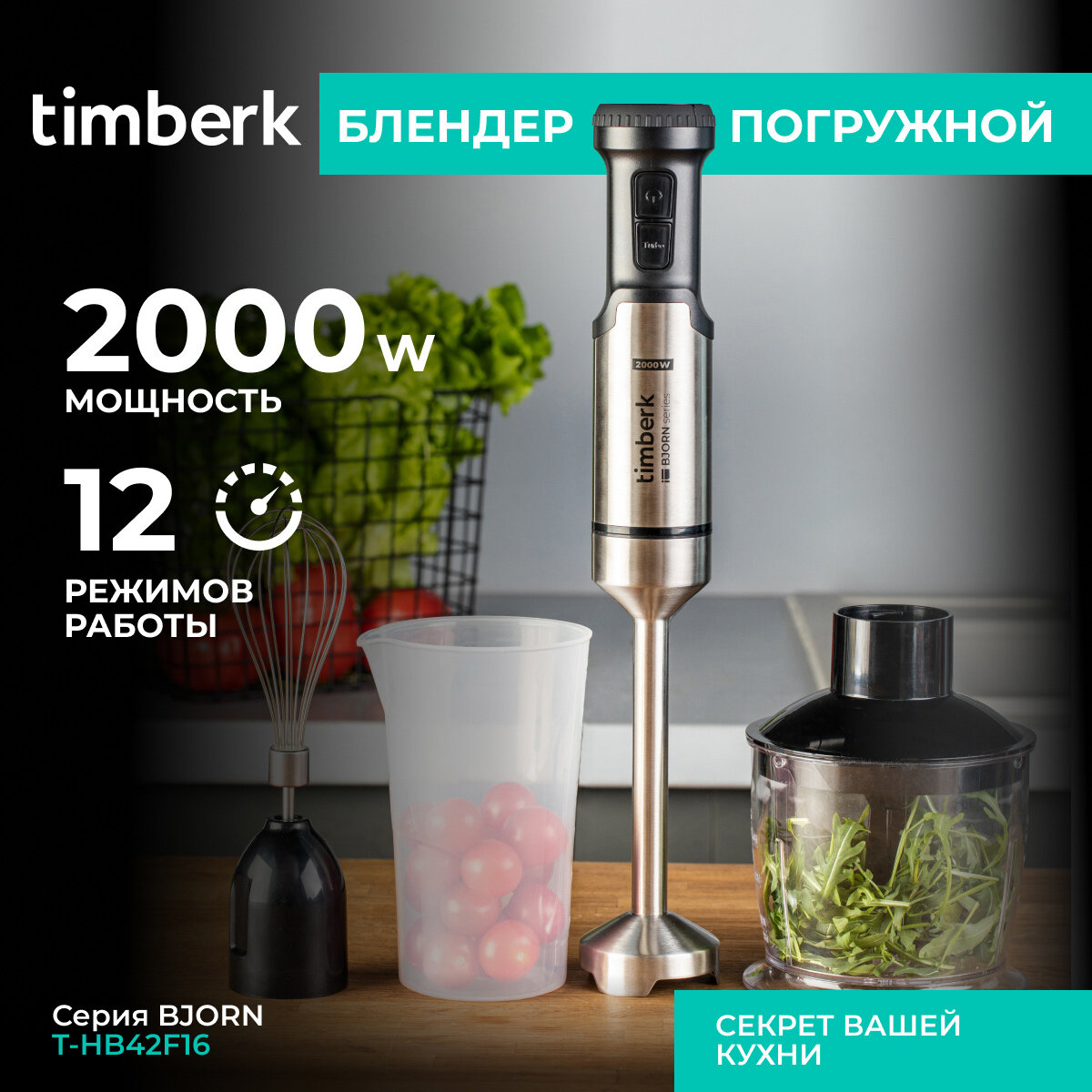 Блендер погружной Timberk T-HB42F16 с 12-ю режимами работы, TURBO, 2000 Вт интересное: