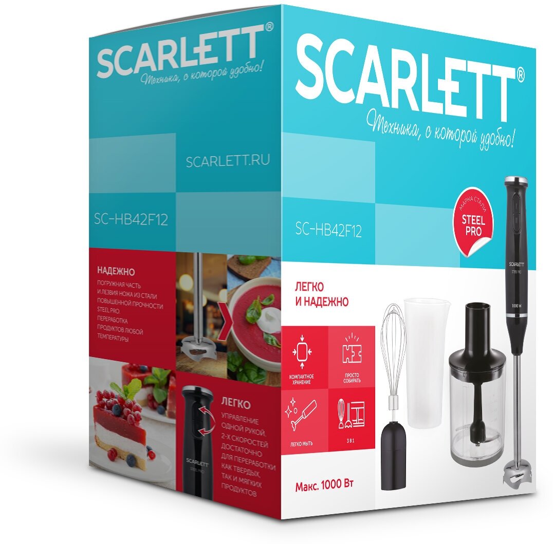 Блендер погружной Scarlett SC-HB42F12?, 1000 Вт , 2 скорости интересное: