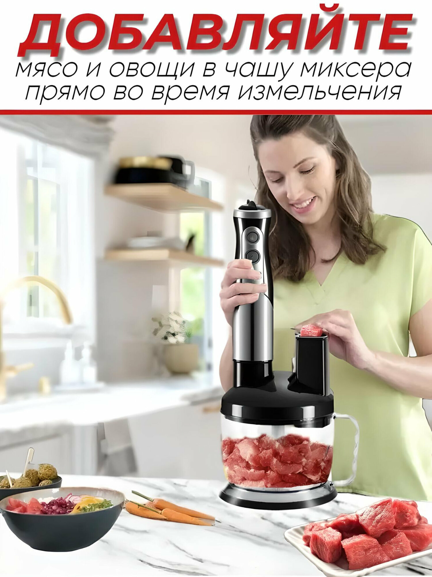 Погружной блендер кухонный 8в1 700Вт 2 скорости Насадки: измельчитель, венчик, погружная, терка, для шинковки 5011-8 интересное: