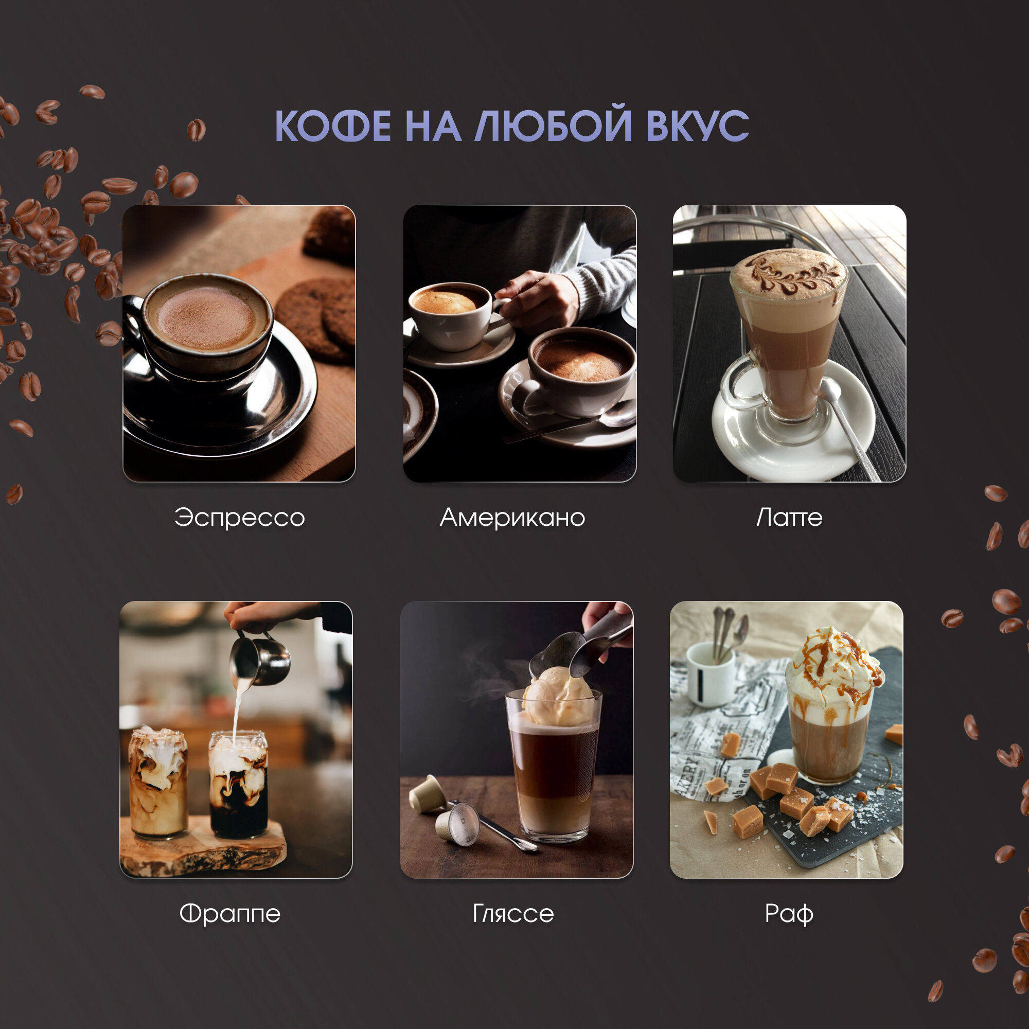 | Тип напитка | американо / латте / эспрессо |
