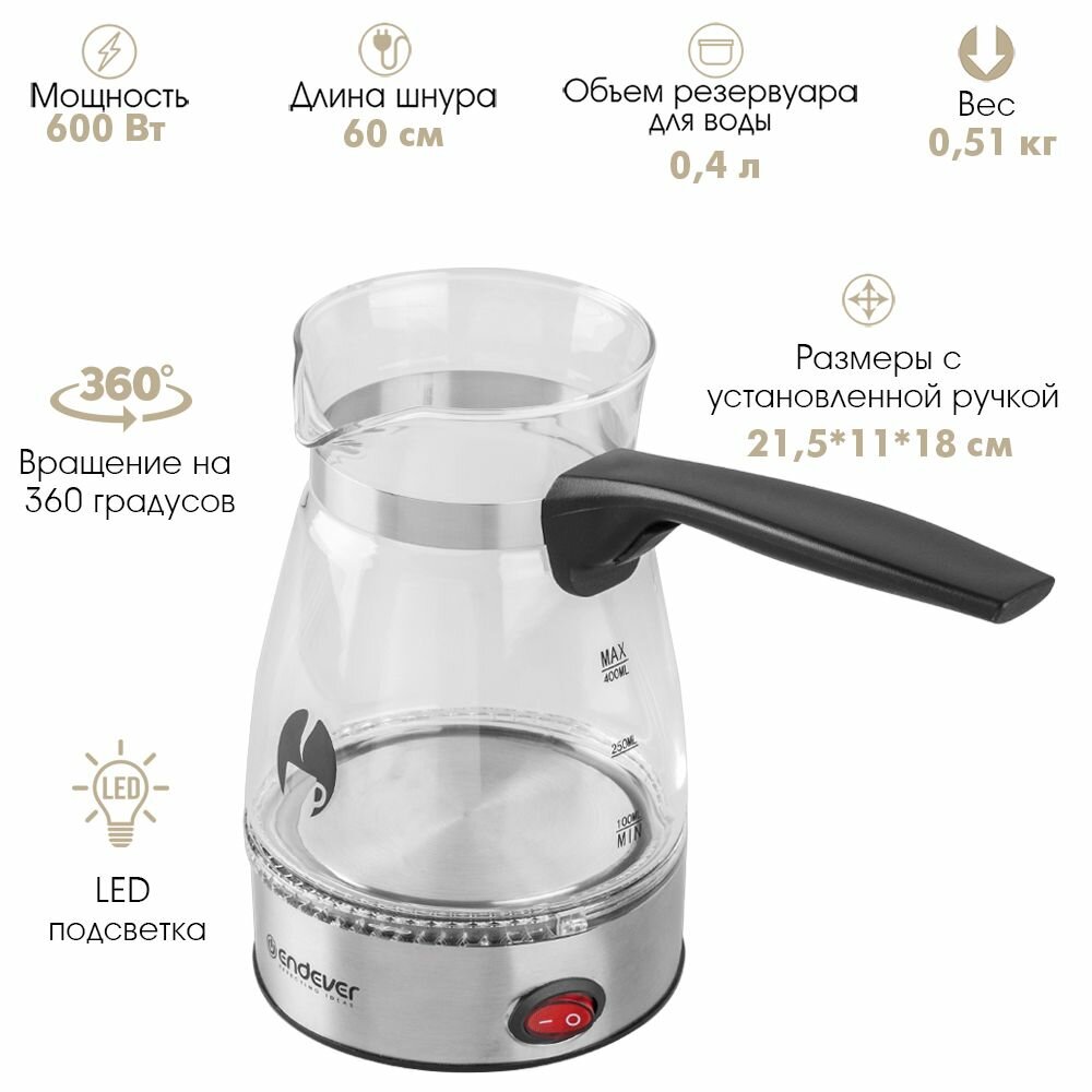 Кофеварка электрическая / турка для кофе Endever Costa-1015, 600 Вт, защита от перегрева интересное: