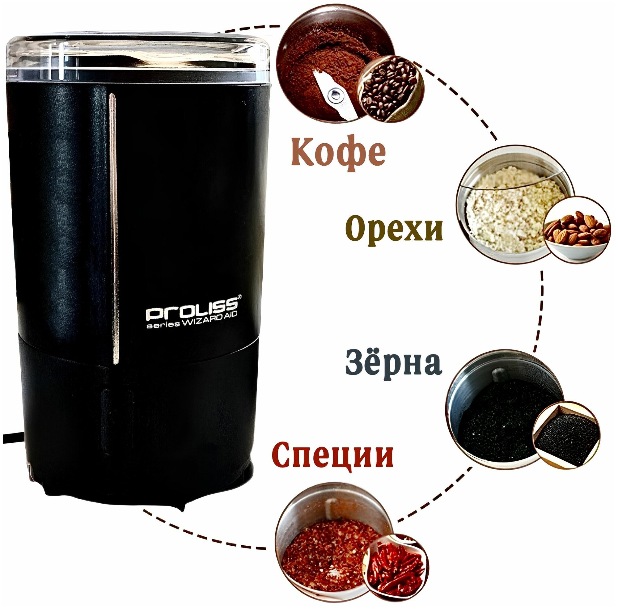 Кофемолка электрическая Proliss PRO-9101 для кофе, специй, черная, измельчитель