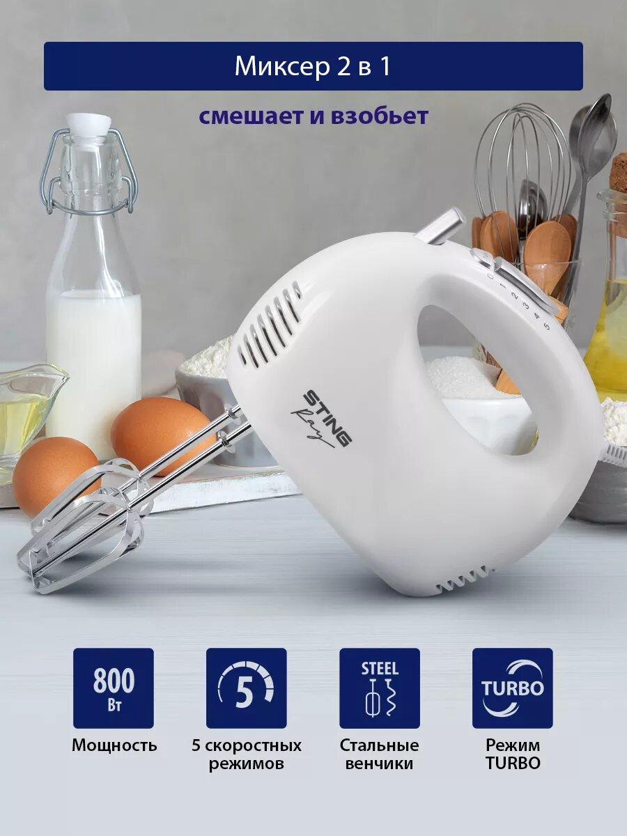 Миксер ручной STINGRAY ST-MX2003A белый жемчуг