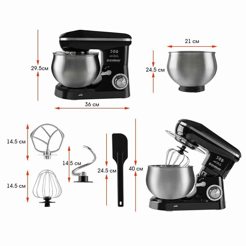 Миксер планетарный Endever Sigma-58, черный, 1600 Вт
