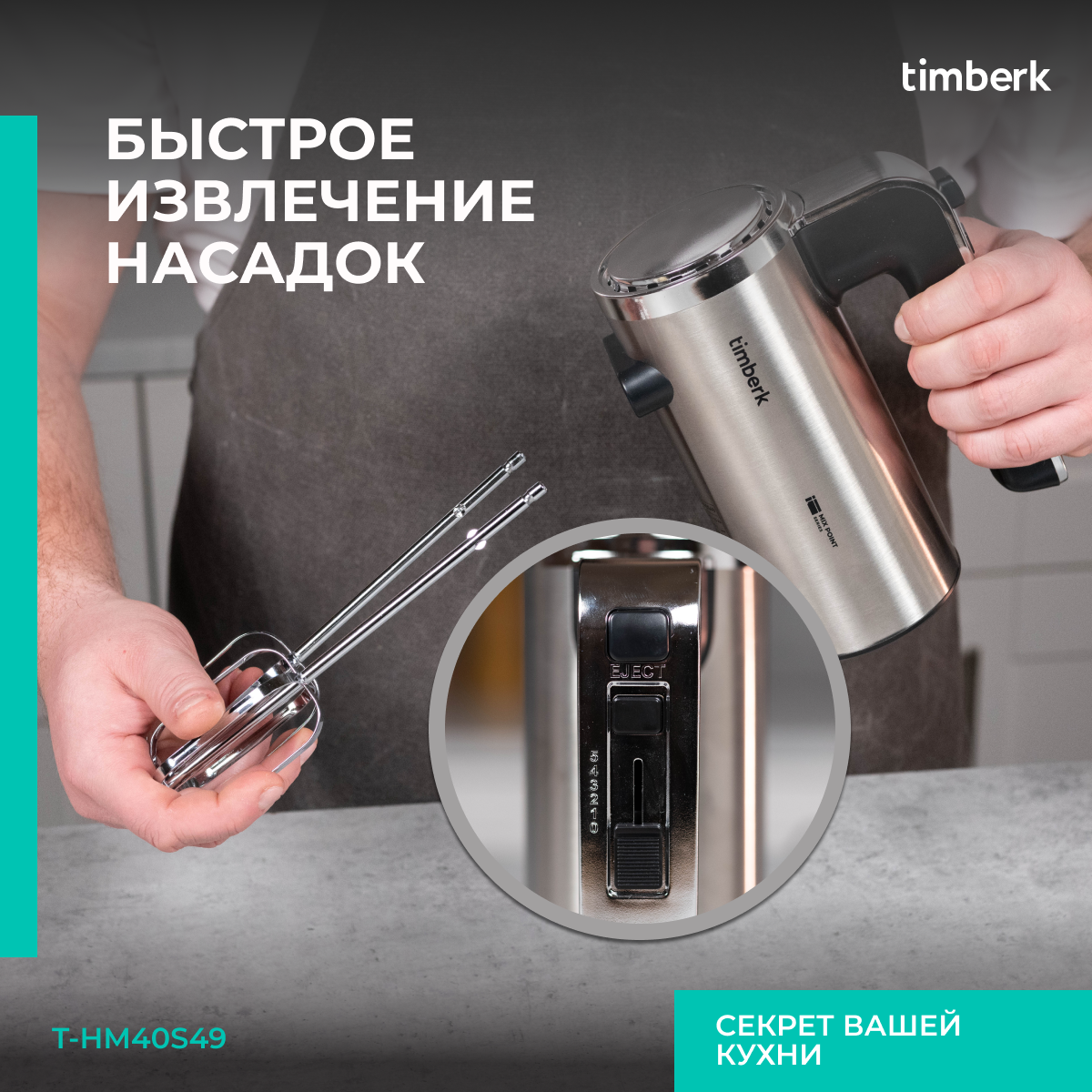 Миксер Timberk T-HM40S49 с 5-ю режимами скорости и турбо режимом интересное: