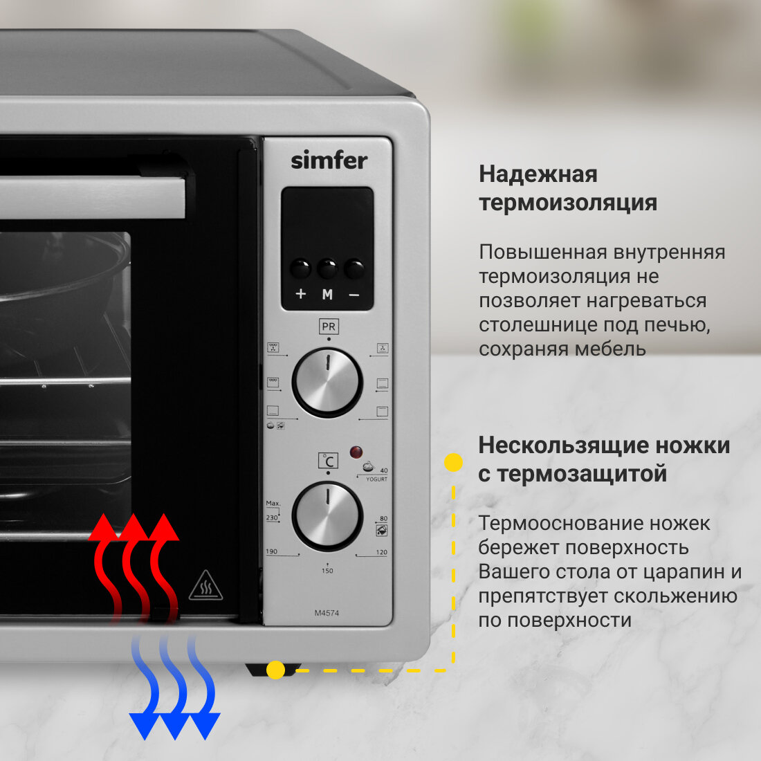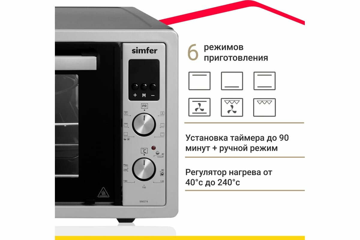 Купить Мини-печь Simfer M4574 (6 режимов, конвекция, двойное стекло, цифровой дисплей, цвет серый)