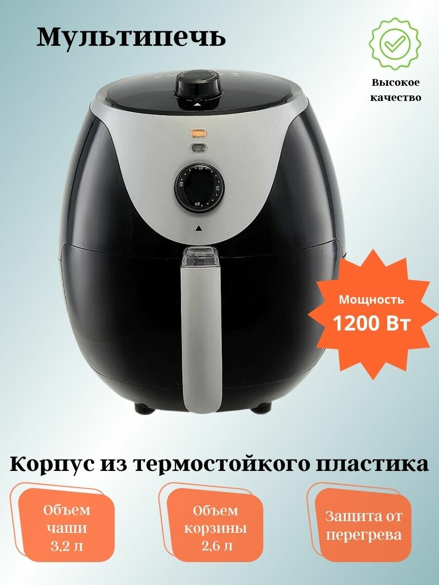 Мультипечь DELTA LUX DE-6102 черный, таймер, чаша 3,2л, корзина 2,6л, мощность 1200Вт, регулируемая температура 80-200 °С (К) интересное: