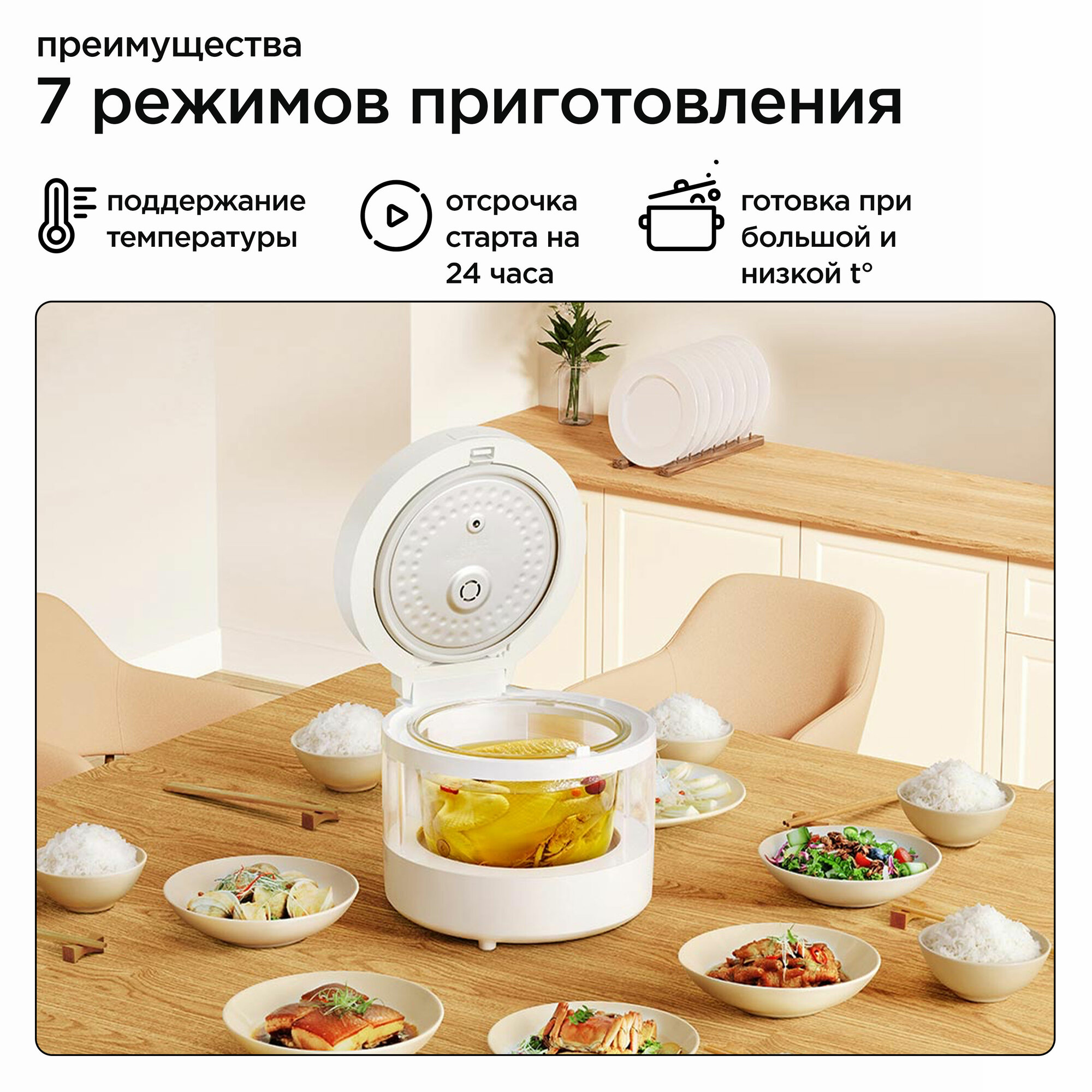 Умная мультиварка-рисоварка Xiaomi Mijia Transparent Steam Rice Cooker (MFB04M) интересное: