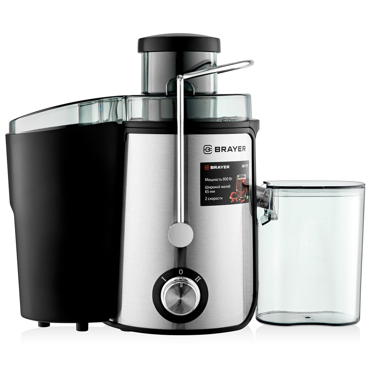 | Дополнительная информация | Центробежная соковыжималка Максимальная мощность 800 Вт 2 скорости для мягких и твердых продуктов Широкий желоб для целого плода 65 мм Корпус из нержавеющей стали Фильтр из нержавеющей стали Контейнер для мякоти объемом 1,4 л Контейнер для сока объемом 0,5 л Противокапельная система Прорезиненные ножки Электропитание 220-240 В, ~50-60 Гц |