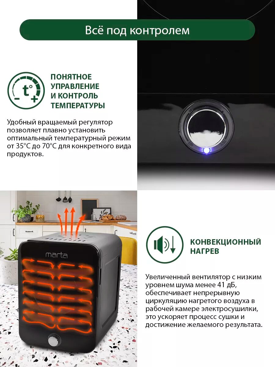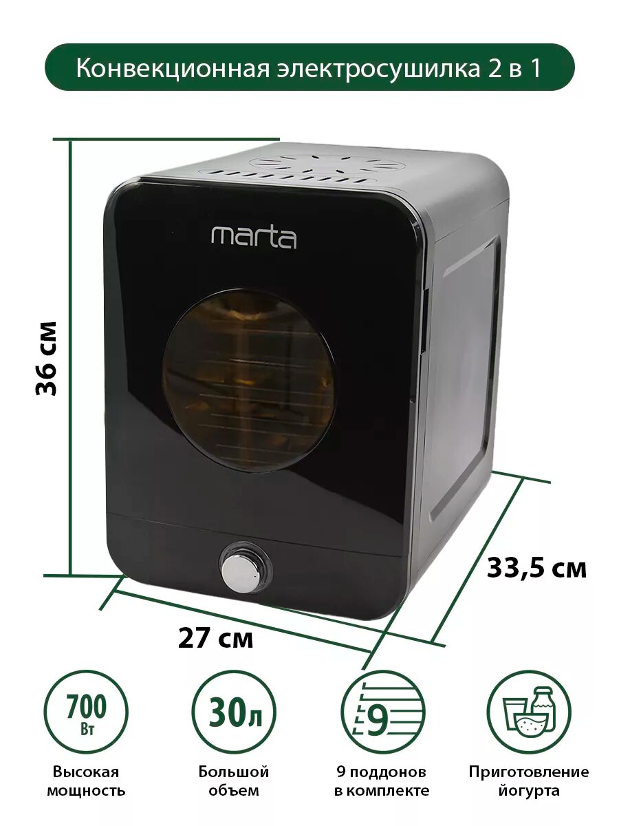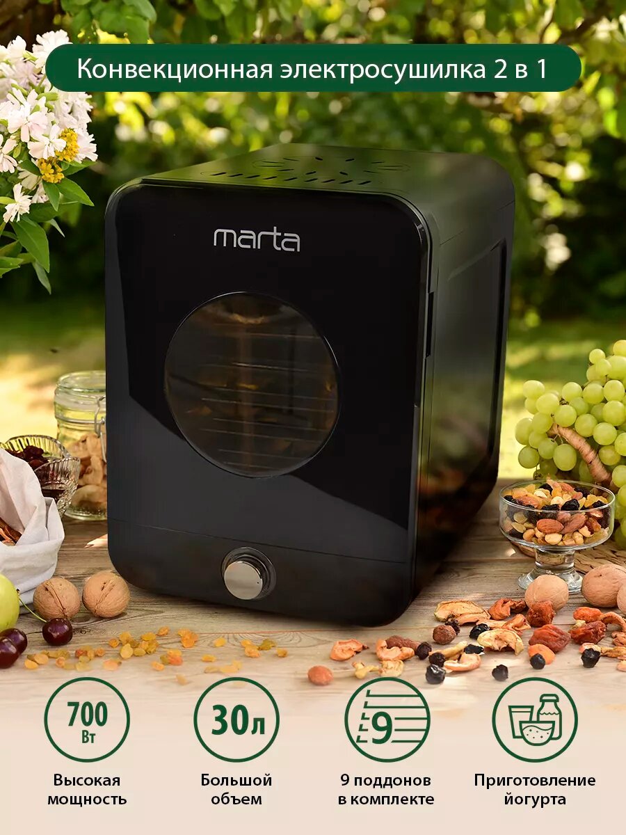 MARTA MT-1876 9 поддонов {6+3} коричневый оникс сушилка д/фруктов,овощей