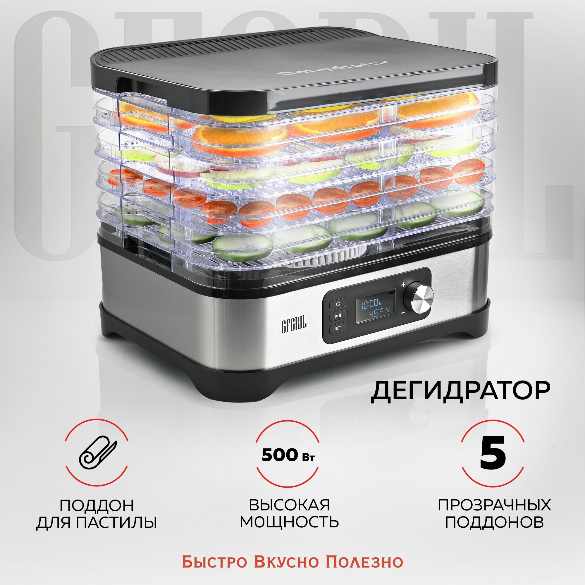 Cушилка для овощей и фруктов GFGRIL GFD-001 дегидратор, 5 поддонов