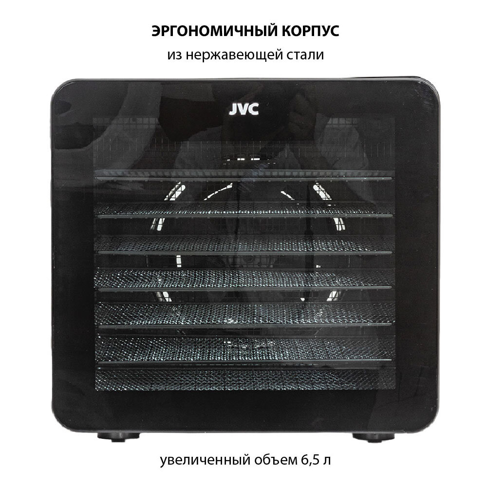 Купить Большая сушилка для овощей и фруктов JVC JK-FD801 с сенсорным управлением, 7 стальных поддонов, приготовление пастилы, таймер и регулировка температуры, 600 Вт