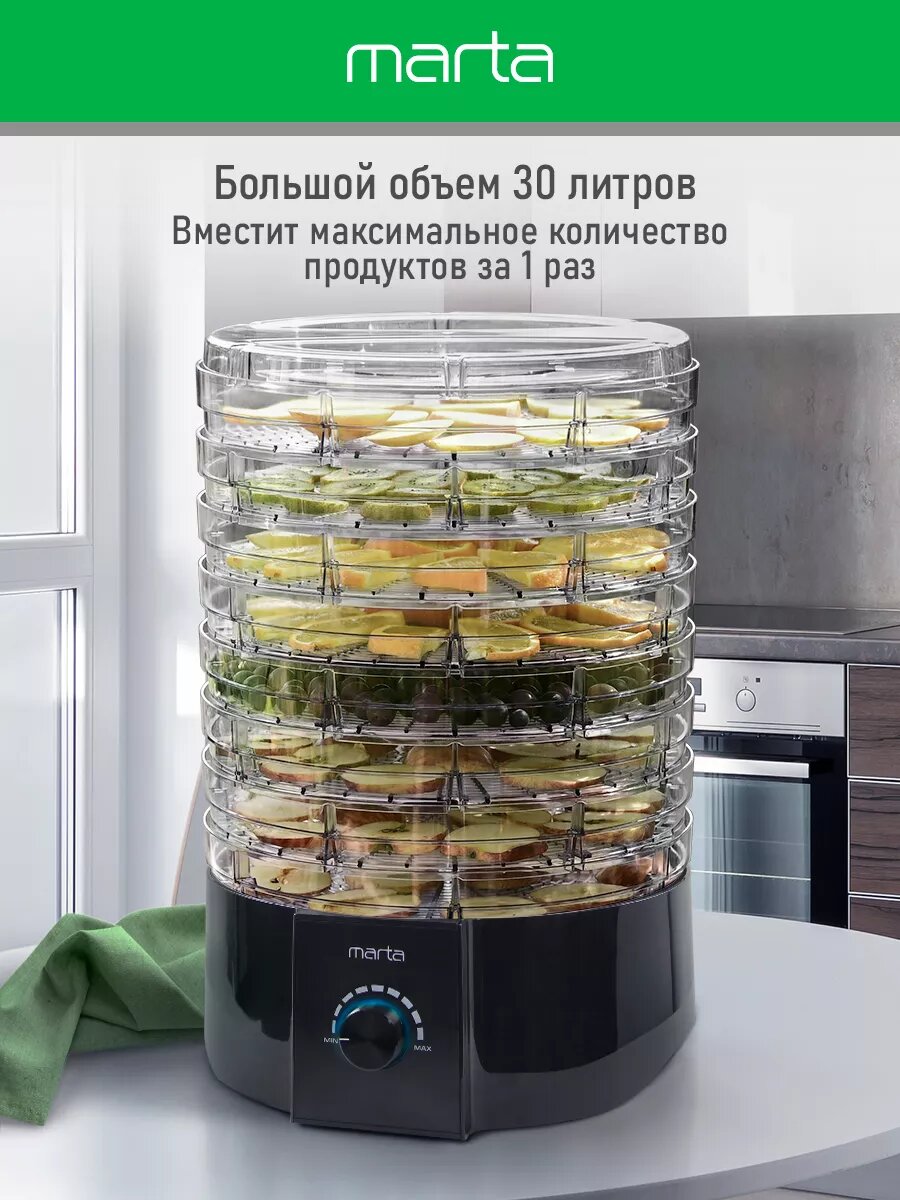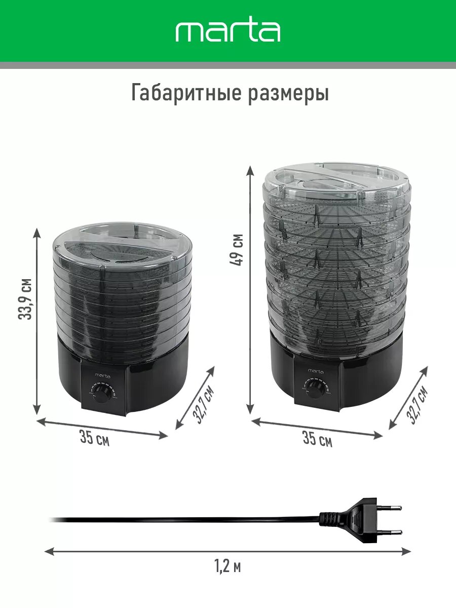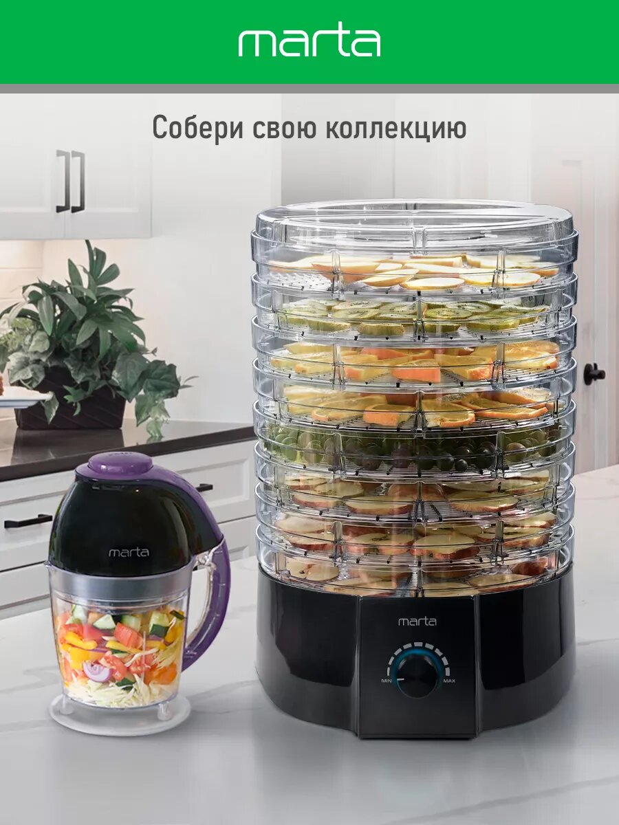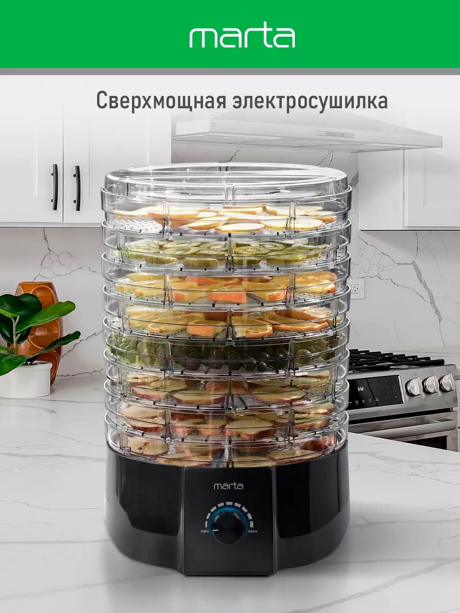 Электросушилка MARTA MT-FD1889E 10 поддонов (8+1 для пастилы+1 для ягод) черный жемчуг