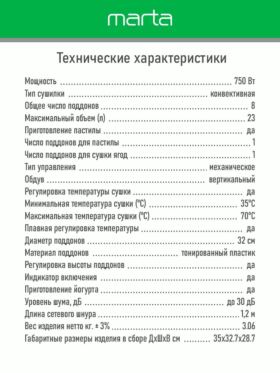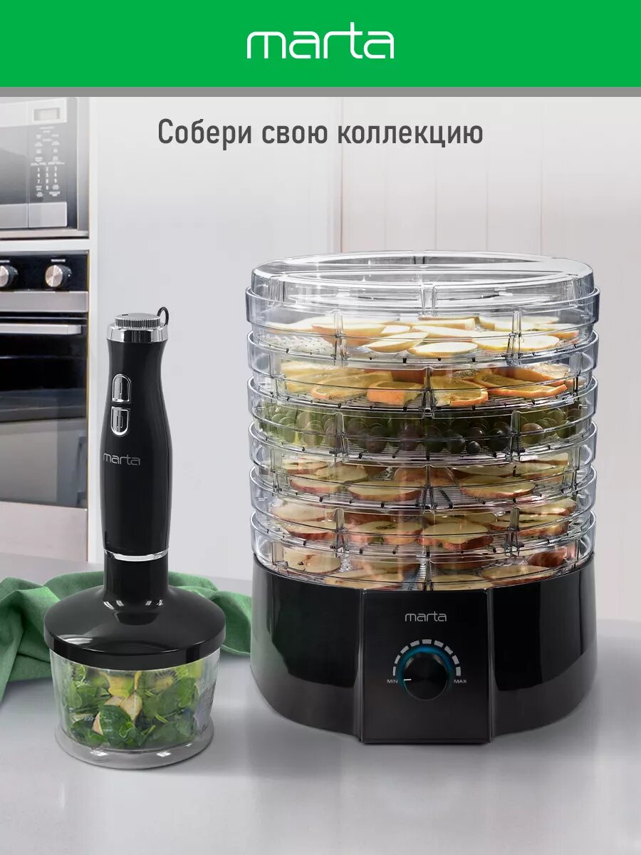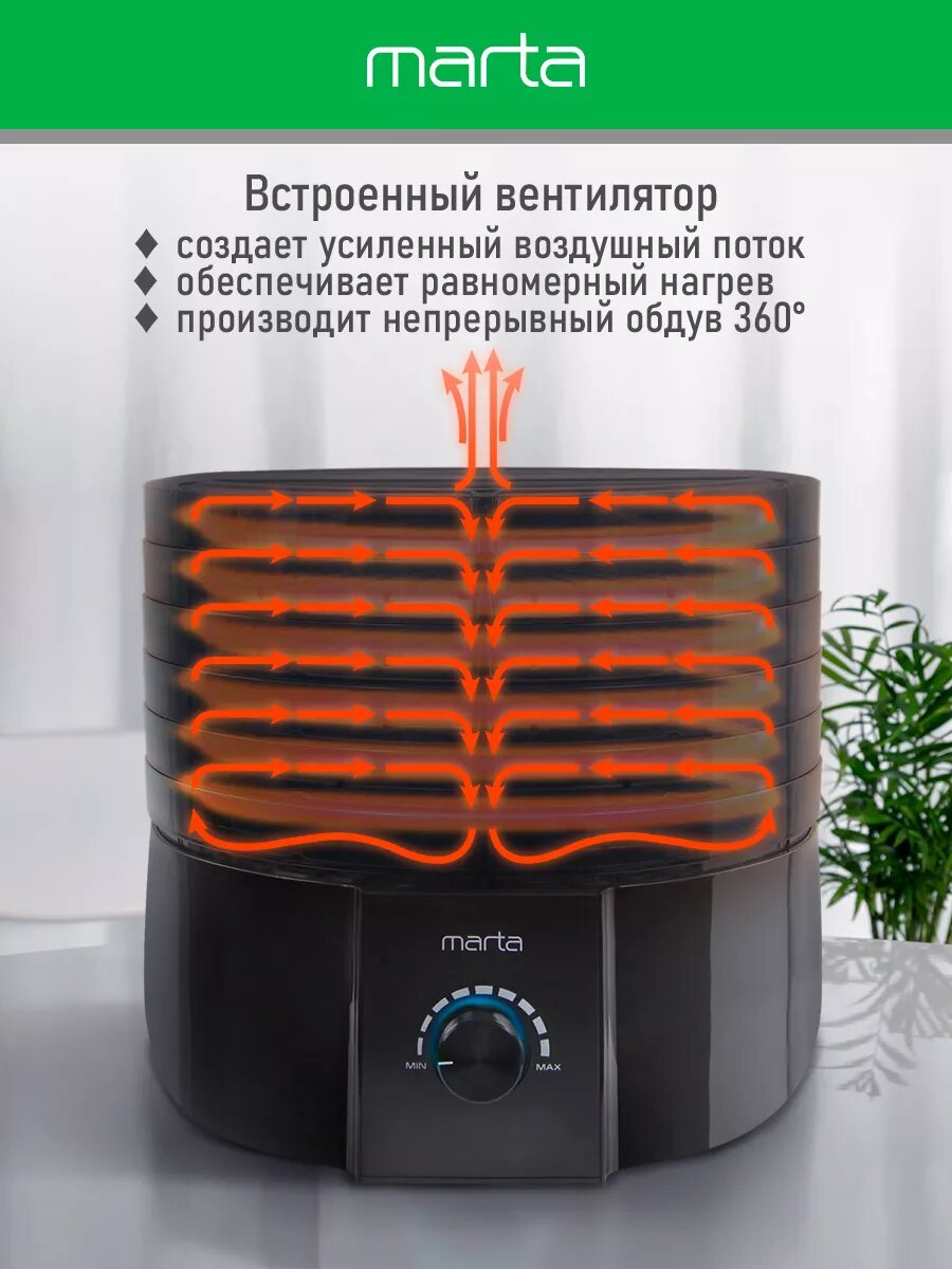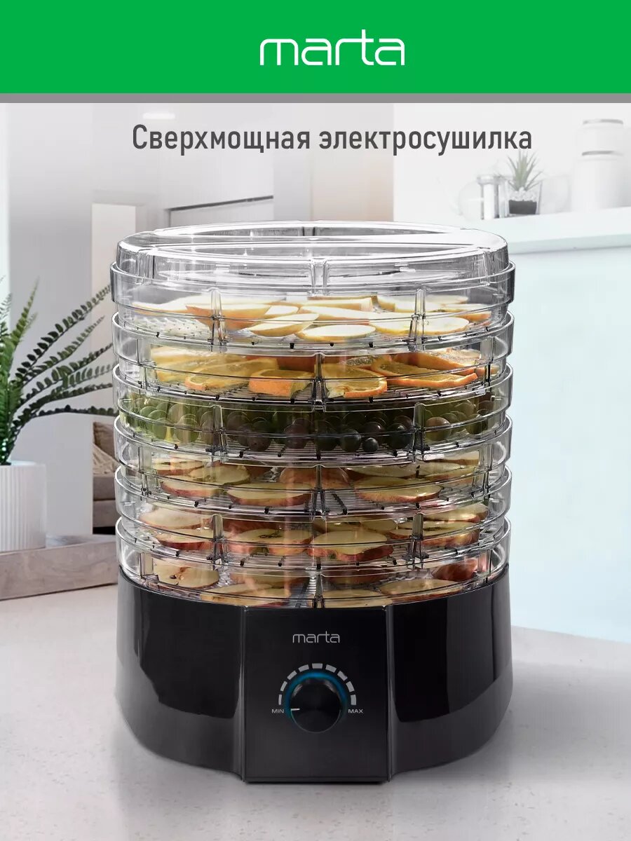 Электросушилка MARTA MT-FD1889C 8 поддонов (6+1 для пастилы+1 для ягод) черный жемчуг
