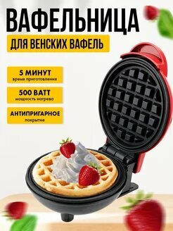 Электрическая мини вафельница, для венских вафель, 350 Вт, красная интересное: