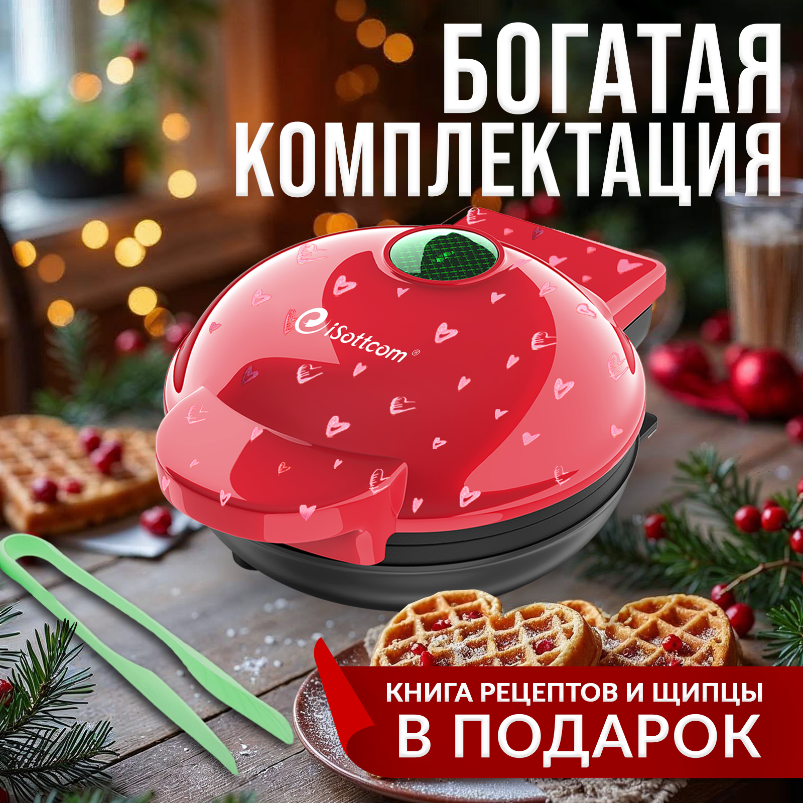 Вафельница-сердце iSottcom электрическая для венских и бельгийских вафель красная с книгой рецептов. Щипцы в подарок интересное: