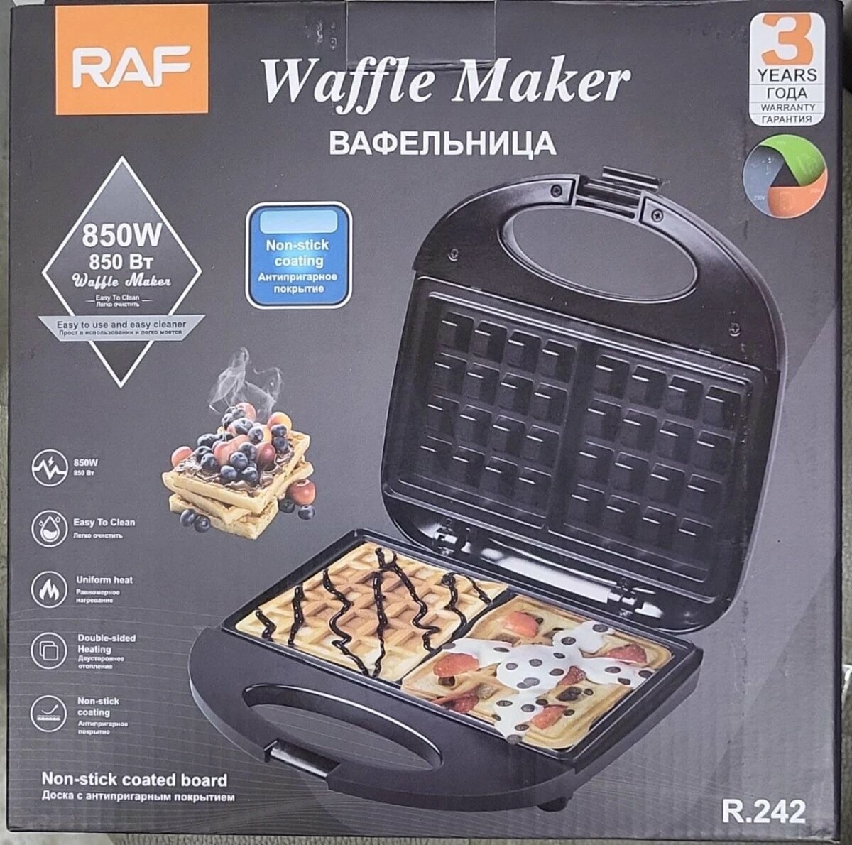 Ниже Вы можете прочитать отзывы на Вафельница RAF Waffle Maker R.242, мощность 850 Вт, ознакомится с подробными характеристиками, посмотреть интересные обзоры и фотографии на Вафельница RAF Waffle Maker R.242, мощность 850 Вт.