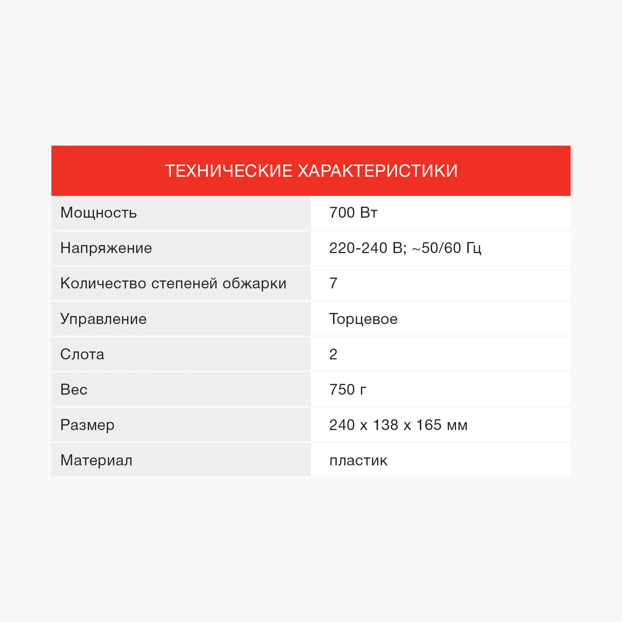 | Дополнительная информация | 7 степеней обжаривания, прорезиненные ножки, функция автоотключения |