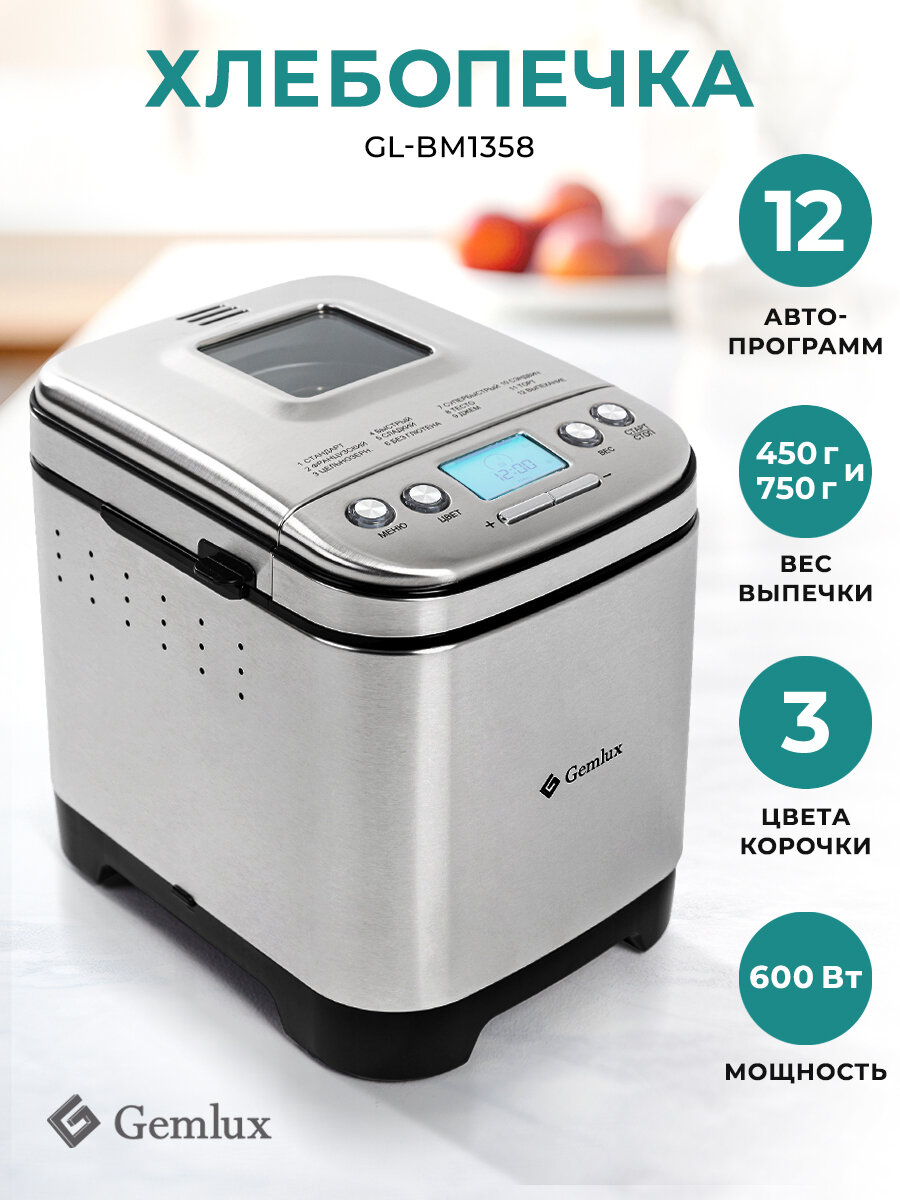 Хлебопечка GEMLUX GL-BM1358 с замесом теста интересное: