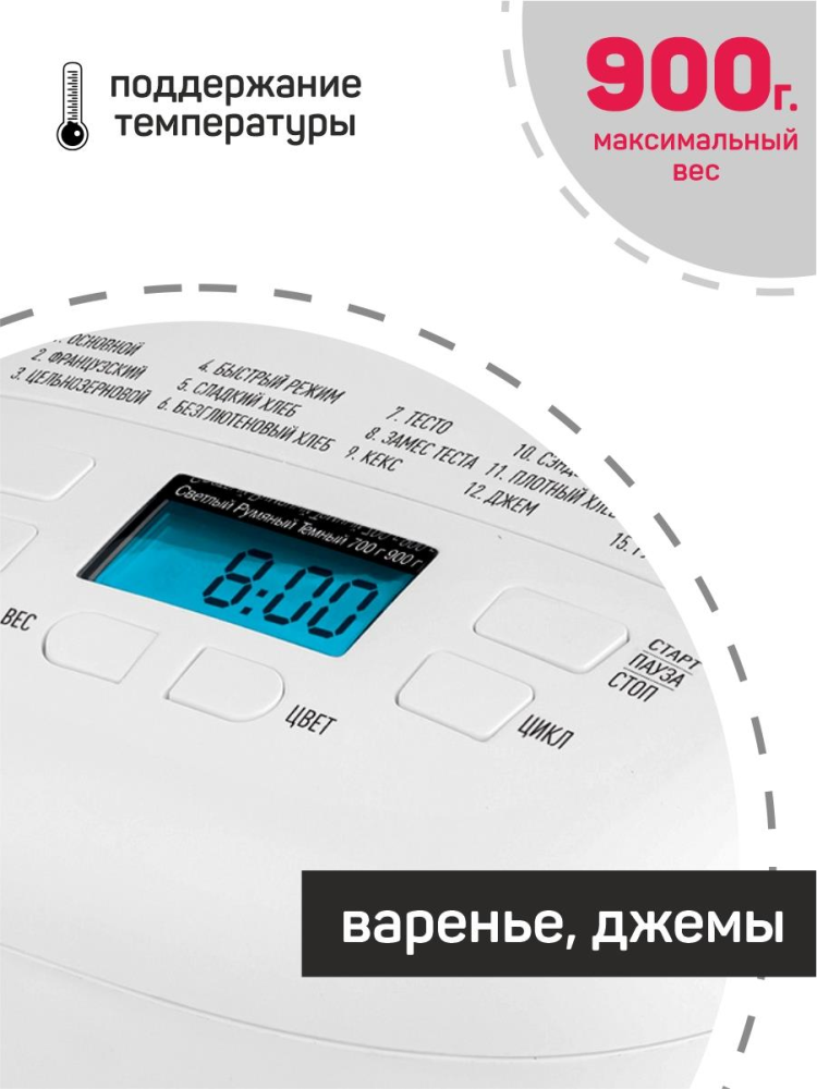 | Максимальный вес выпечки | 900 г |