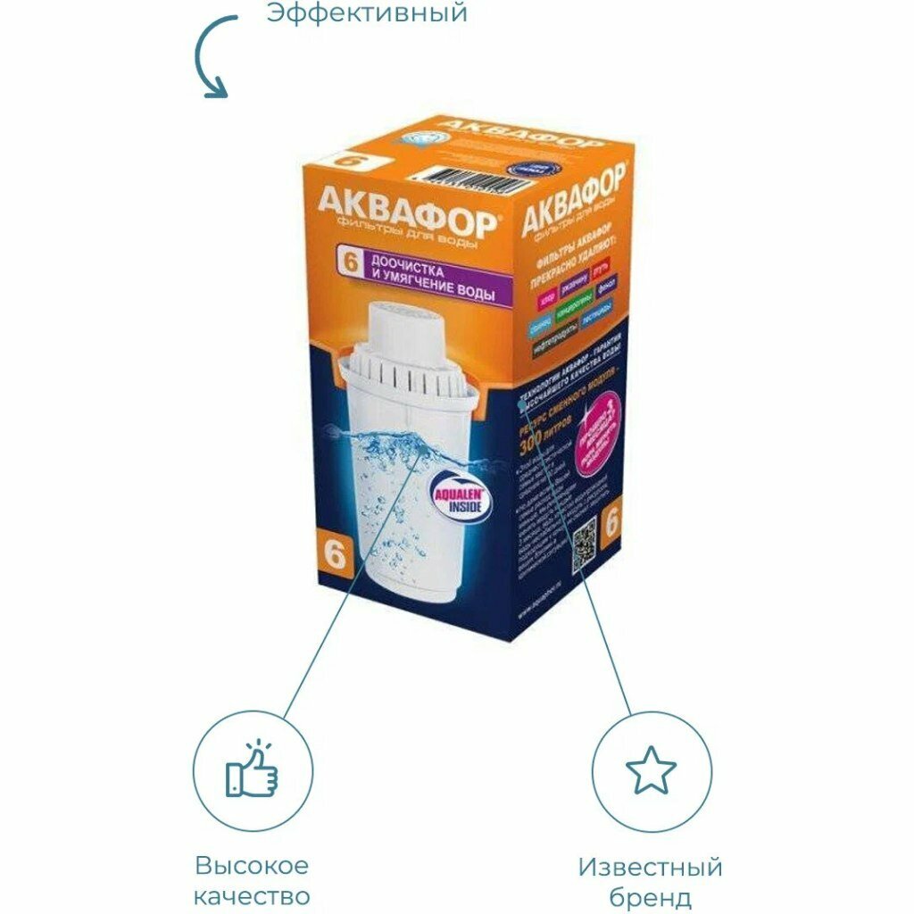 Картридж для фильтра-кувшина Аквафор, B6, доочистка, умягчение воды интересное:
