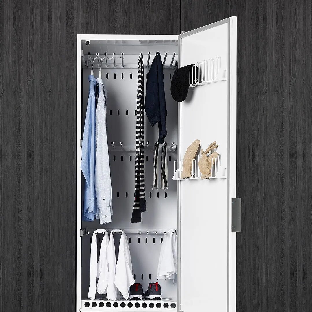 | Дополнительная информация | отдельностоящий, возможность установки в нише, крепление к стене; расположение мотора: сверху; подключение: номинальная мощность 2000 Вт; номинальное напряжение 230 В/1 фаза, предохранитель 10 А, частота: 50 Гц; вентиляционный вывод: слева сзади, диаметр 110 мм, длина вентиляционной трубы 100 см; усиленная конструкция двери со звукоизоляцией, дверь перенавешиваемая; направленный обдув одежды и белья; скорость удаления влаги: 17 г/мин.; проветривание: 180 м³/ч; загрузка 4 кг; интерфейс: ProHome; автоматические программы: экстра сухое, сухое нормальное; программы по времени: сушка по времени (максимальная продолжительность 6 ч), холодная сушка/проветривание (максимальная продолжительность 12 ч); функции: регулировка температуры, установка времени сушки, таймер отсрочки старта (максимальное время 24 ч), система запоминания выполненных программ; складные секции вешалок с телескопическими направляющими, вешалка для перчаток, подставка для обуви; безопасность: блокировка от детей, выключение при открытии двери |