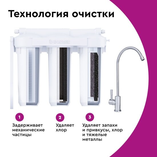 Фильтр под мойку для очистки воды трехступенчатый БАРЬЕР профи Стандарт Лайт, удаляет хлор