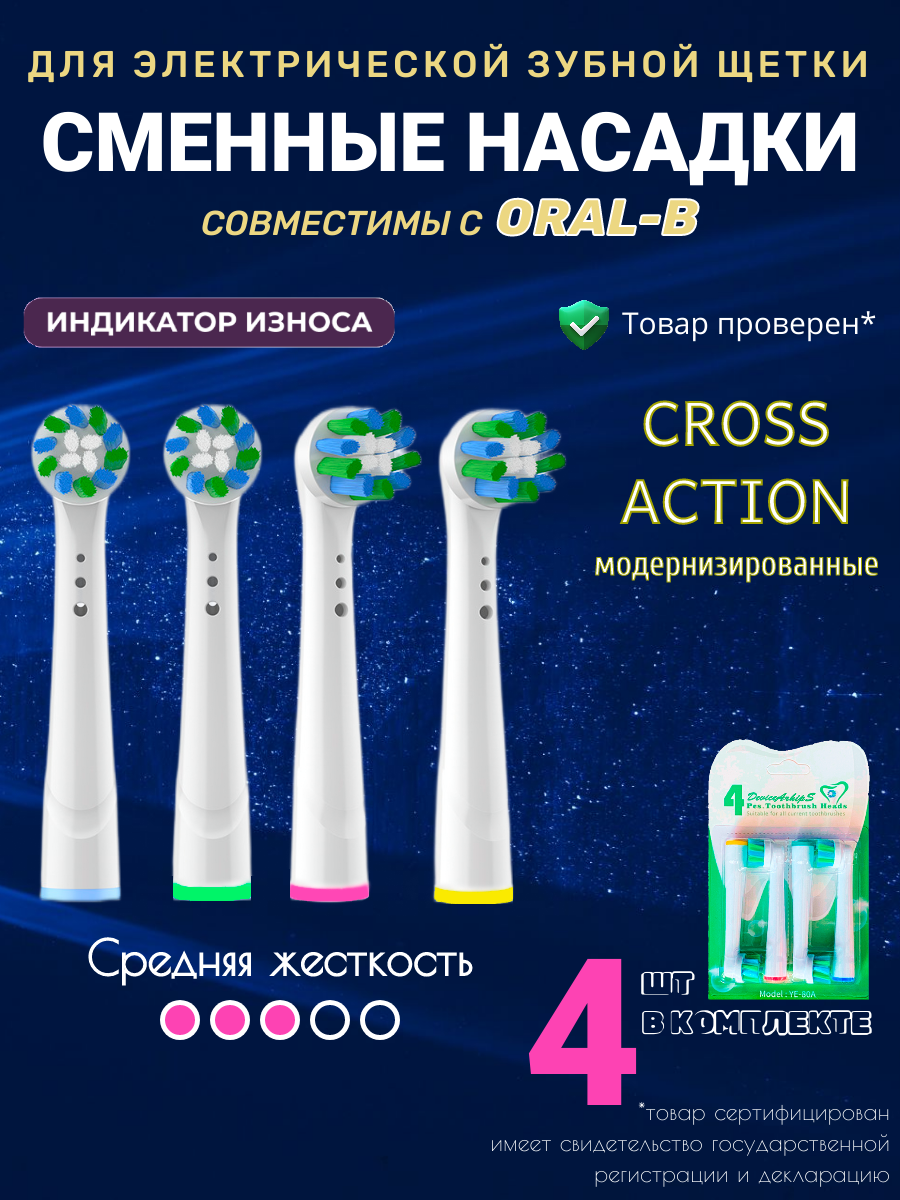 Насадки для электрической зубной щетки совместимые с Oral-B модель YE-80A Cross Action модернизированные 4 шт.