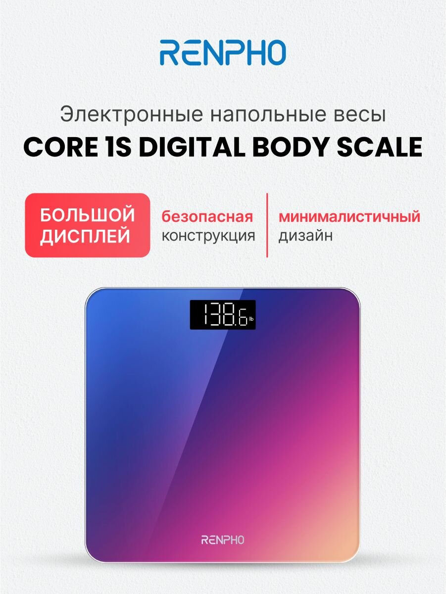 Купить Весы напольные электронные Renpho Core 1S BG260R стеклянные, с большим экраном, до 180 кг, градиент