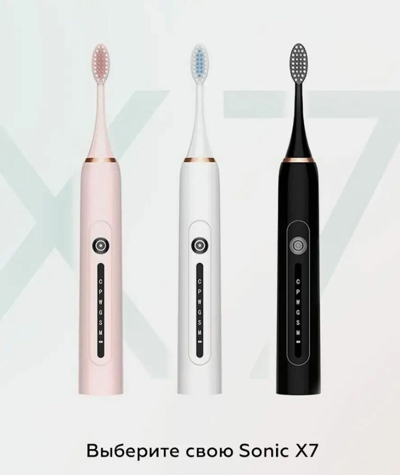 Электрическая зубная щетка X7 с 4-мя насадками, цвет черный