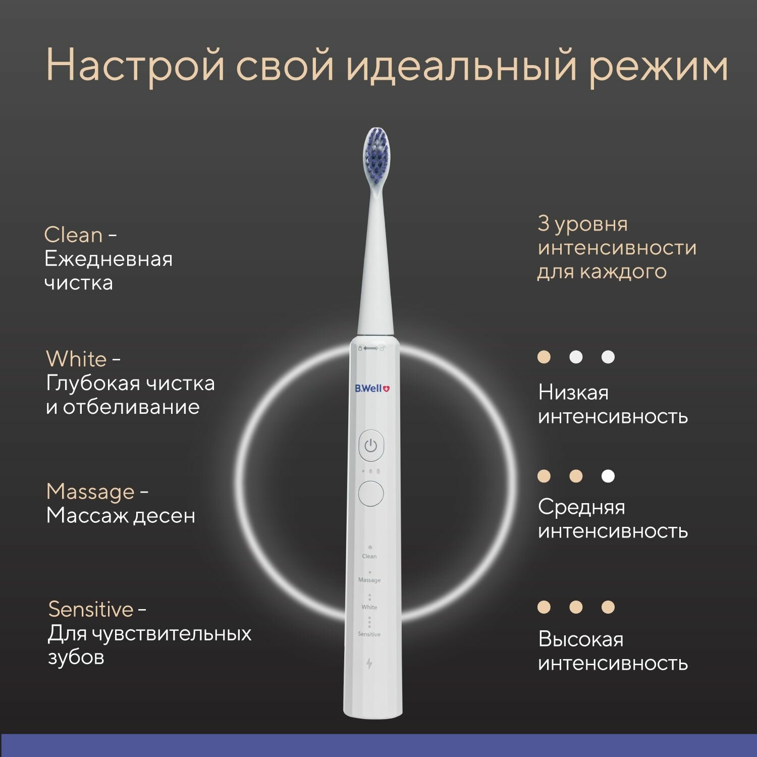 | Режимы работы | деликатная чистка / ежедневная чистка / массаж / отбеливание / полировка / уход за деснами / чистка языка |