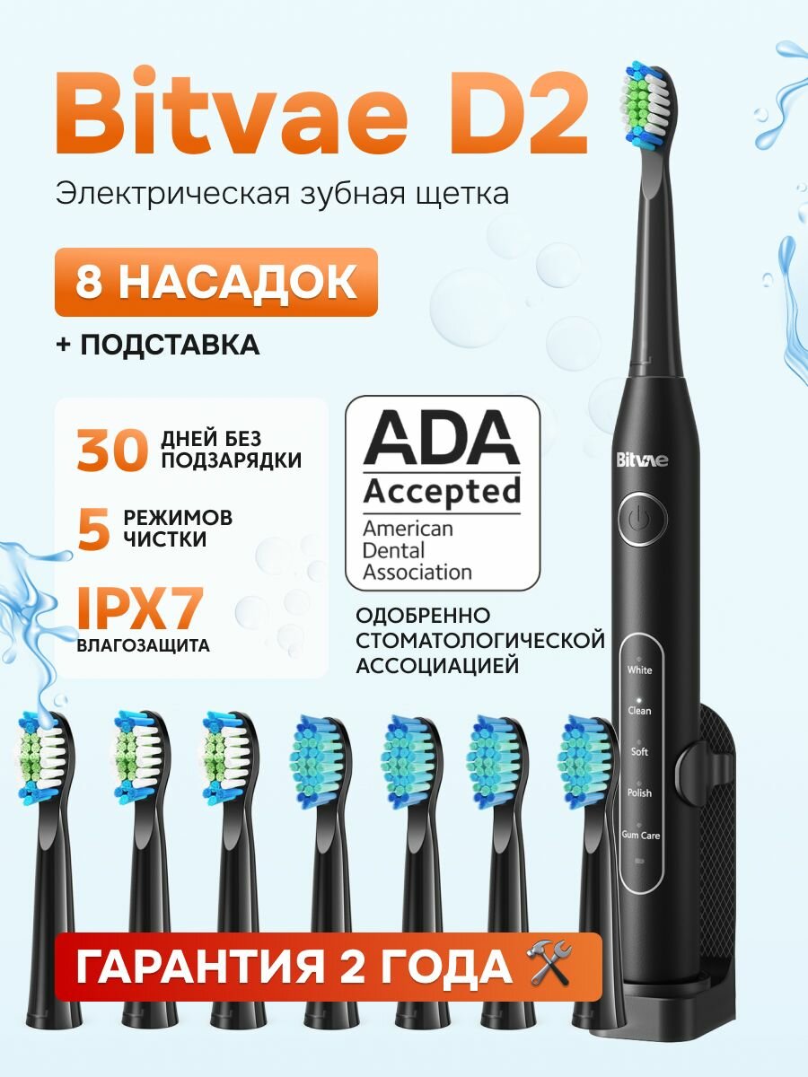 Зубная щётка электрическая Bitvae D2 Daily Toothbrush (подставка + 8 насадок), черная