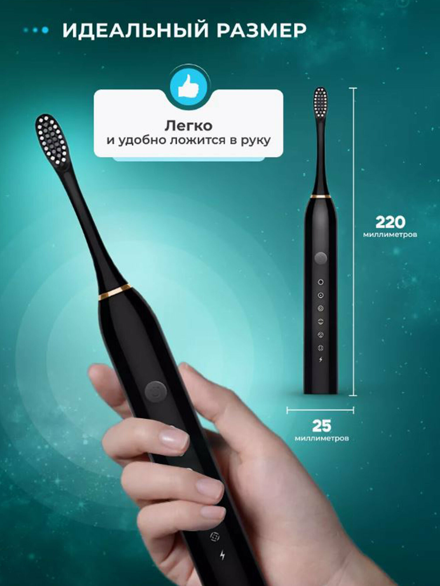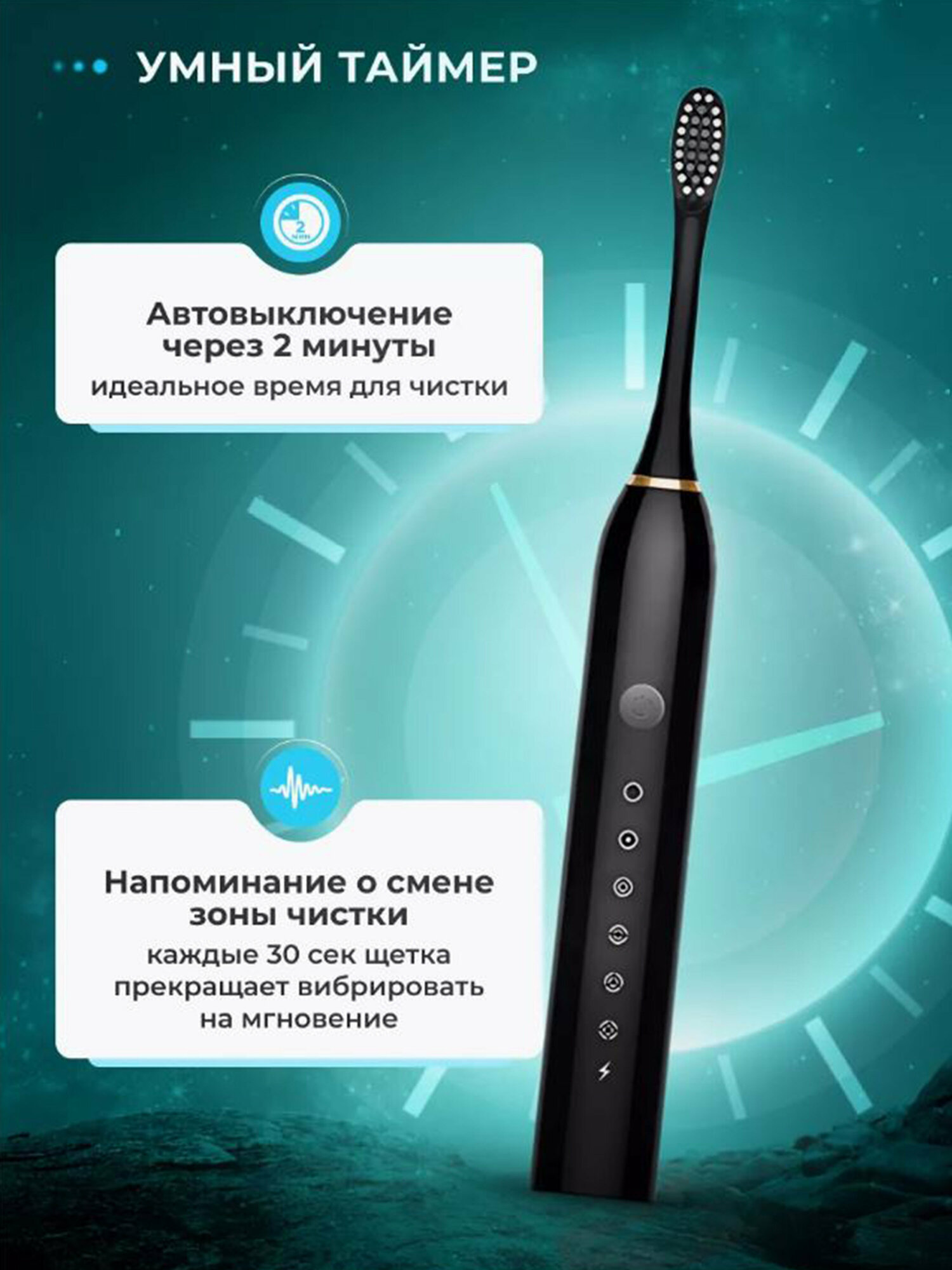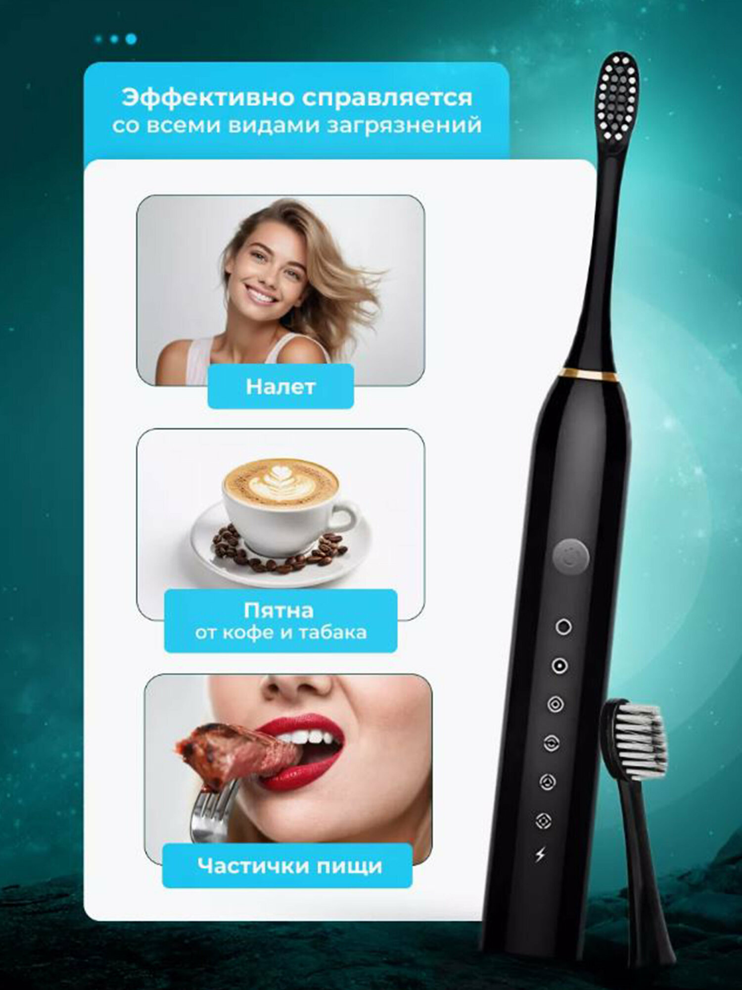 Ниже Вы можете прочитать отзывы на Электрическая зубная щетка с набором насадок и 6 режимами черного цвета, ознакомится с подробными характеристиками, посмотреть интересные обзоры и фотографии на Электрическая зубная щетка с набором насадок и 6 режимами черного цвета.