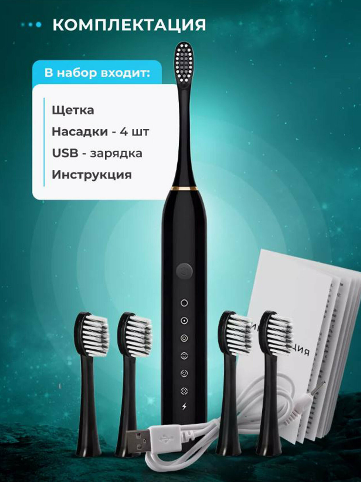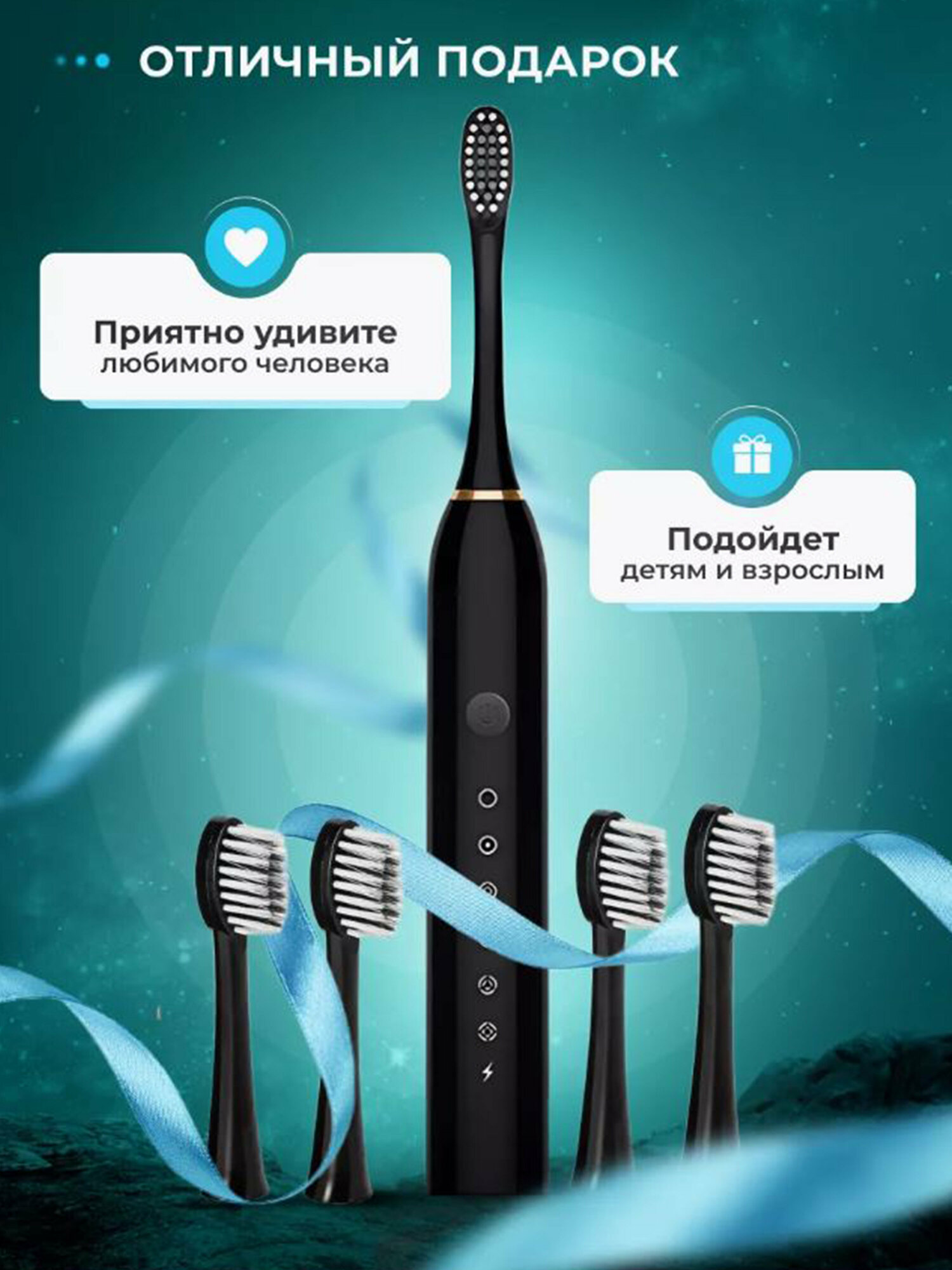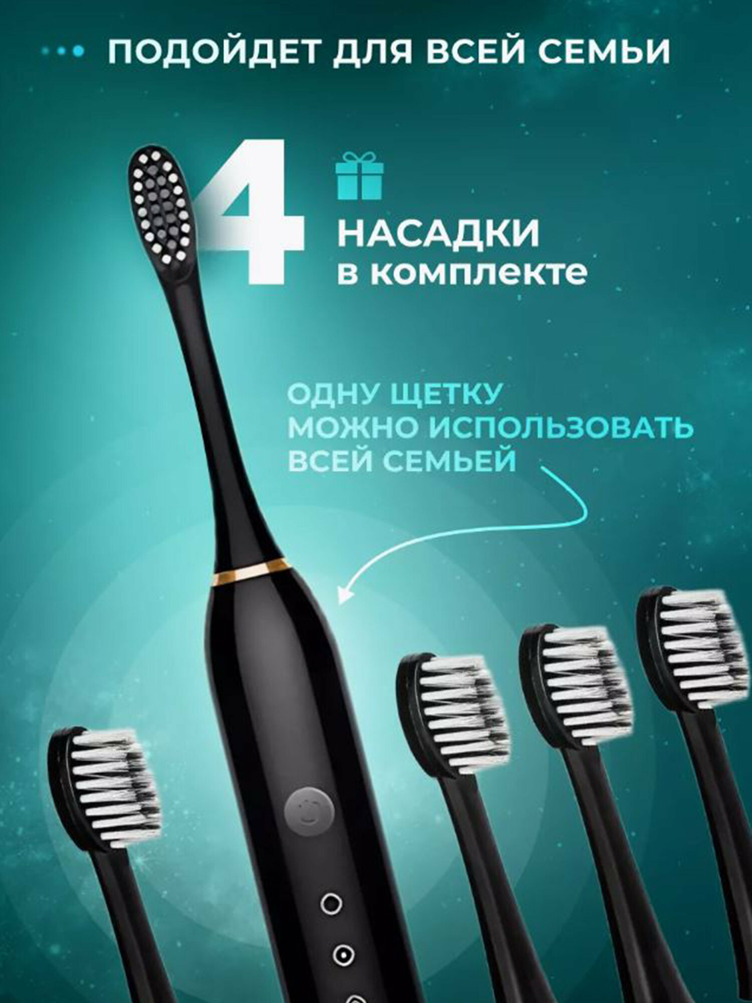 Купить Электрическая зубная щетка с набором насадок и 6 режимами черного цвета