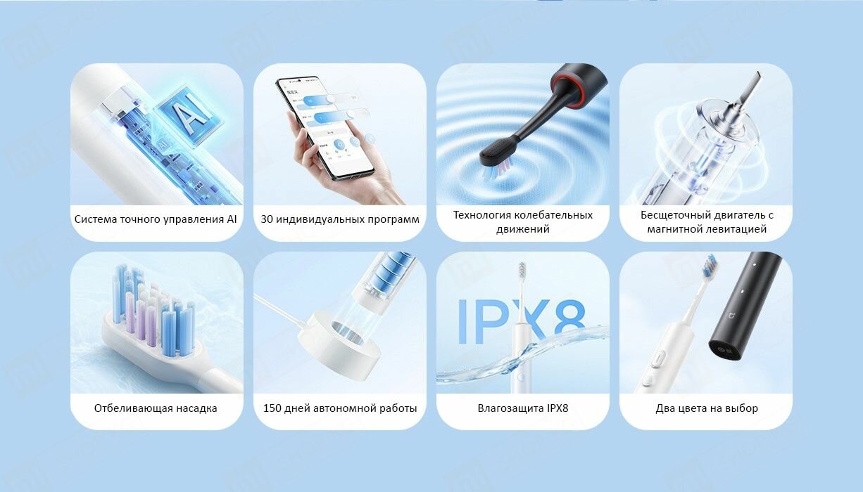 | Дополнительные функции | датчик нажима / таймер времени чистки / таймер смены области чистки |