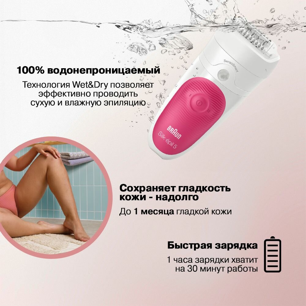 Купить Эпилятор и электробритва для женщин Braun S5 SES 5-600, белый/розовый, 3 насадки, тип 5391