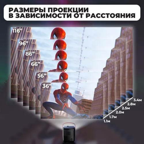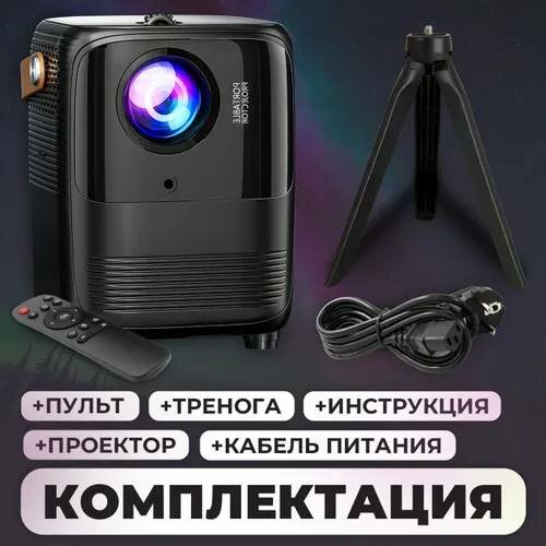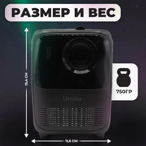 Проектор Umiio Q2(А010) Ultra c разъемом hdmi для работы, фильмов, YouTube, приставок PlayStation или X-Box и других гаджетов / Чёрный