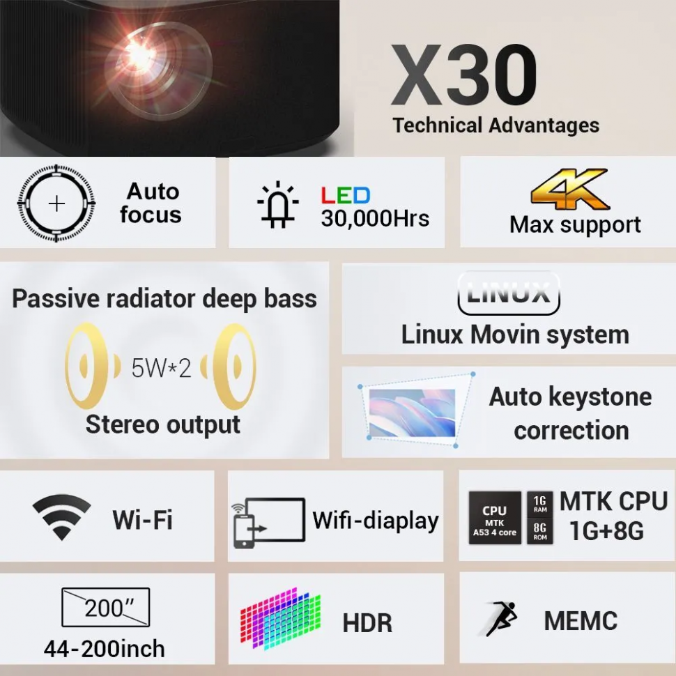 Проектор BYINTEK X30 1080P, 4K, Wi-Fi, HD Linux Movin system интересное: