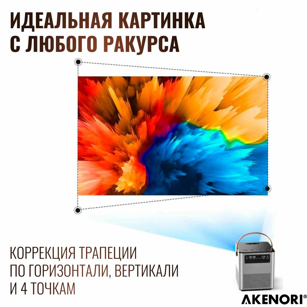 Проектор Akenori LED-330A, беспроводное подключение, диагональ 43-220", разрешение 1920x1080 Wi-Fi Android