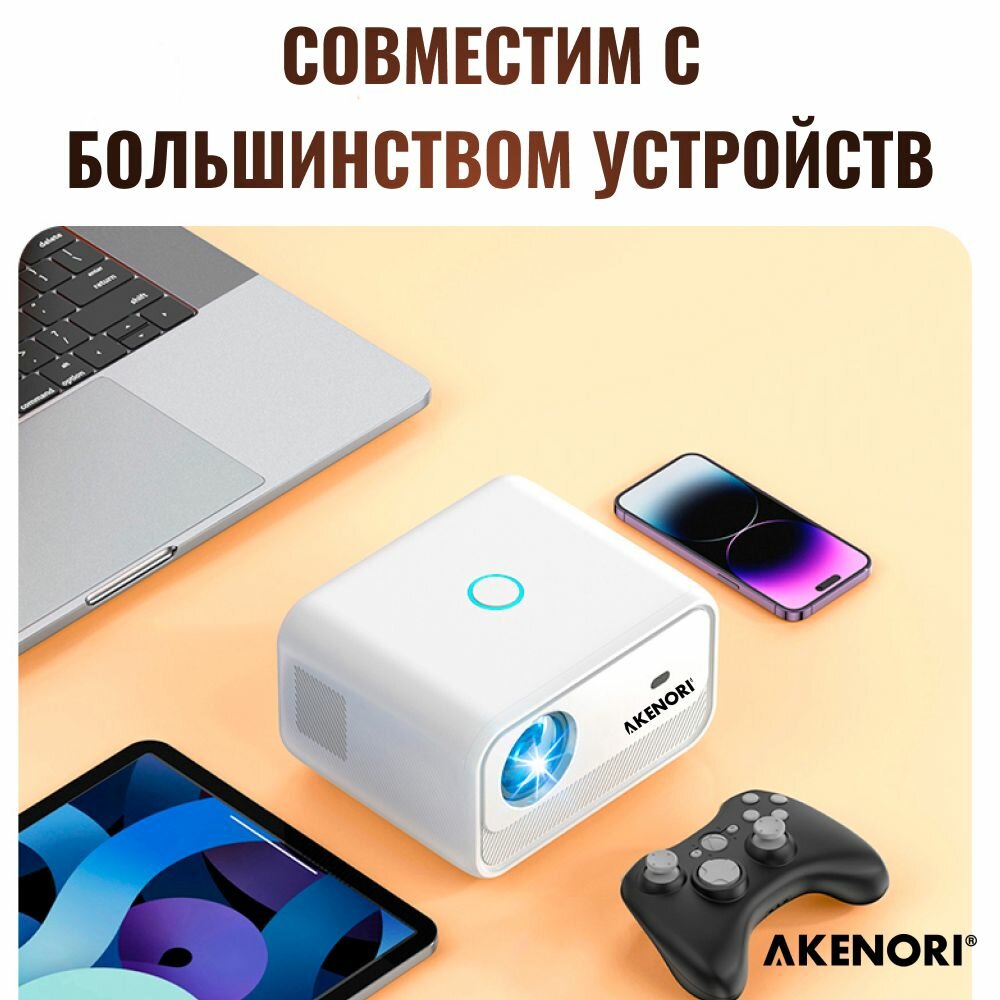 Проектор Akenori LED-330A, беспроводное подключение, диагональ 43-220", разрешение 1920x1080 Wi-Fi Android
