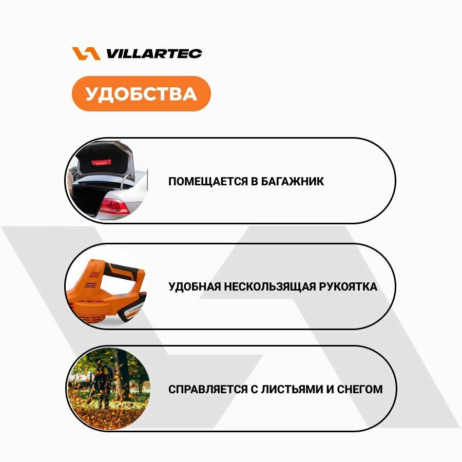 Воздуходувка аккумуляторная VILLARTEC BA20 интересное: