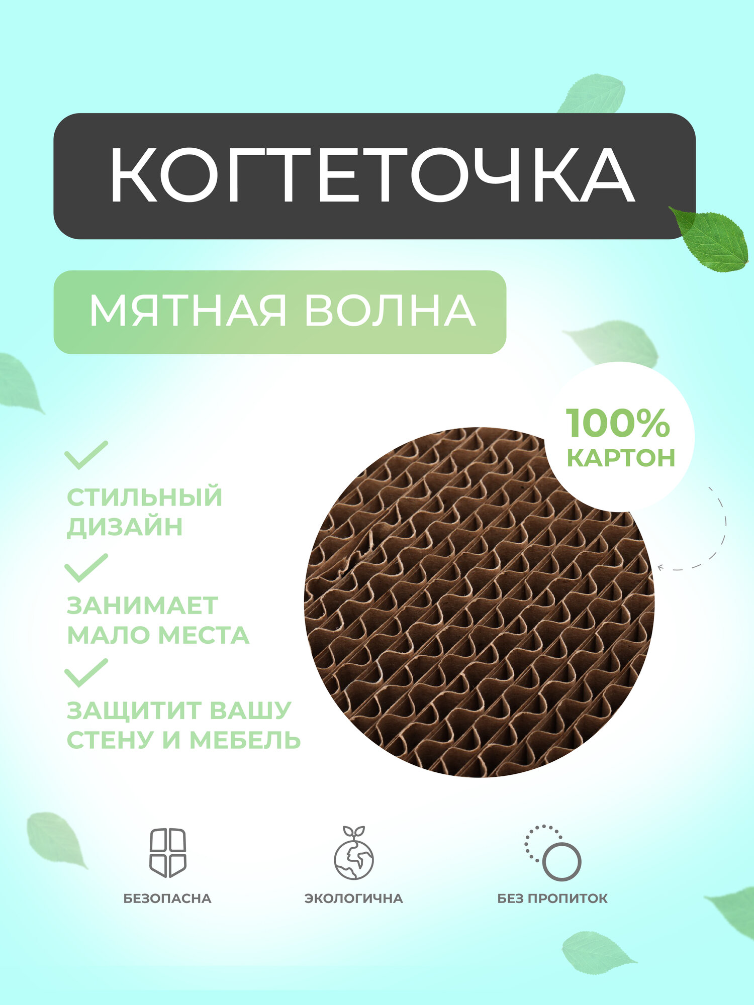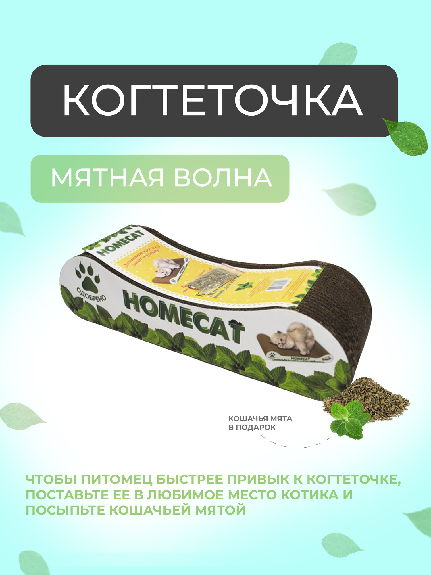 HOMECAT Когтеточка "Мятная волна", гофрокартон, 12*8*9 см