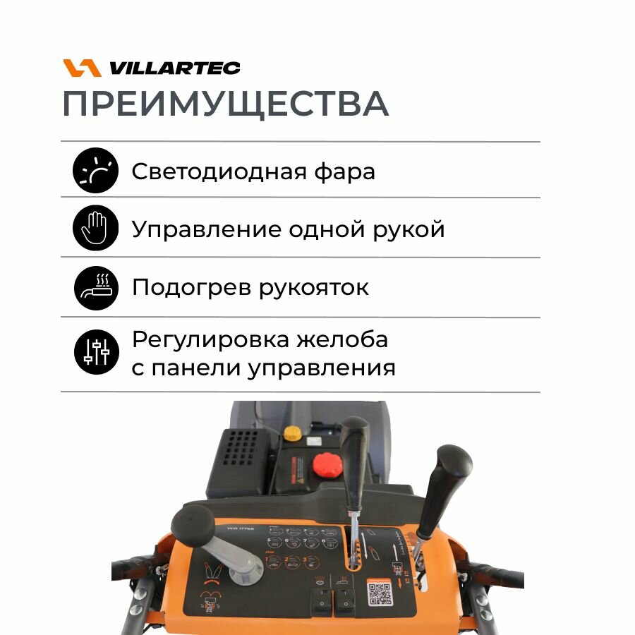 Снегоуборщик бензиновый самоходный с электростартером, подогревом ручек, светодиодной фарой и автоматическим дифференциалом VILLARTEC WB1176E 11 л.с. интересное: